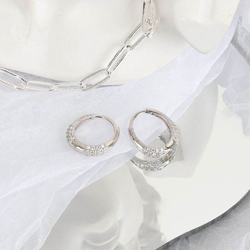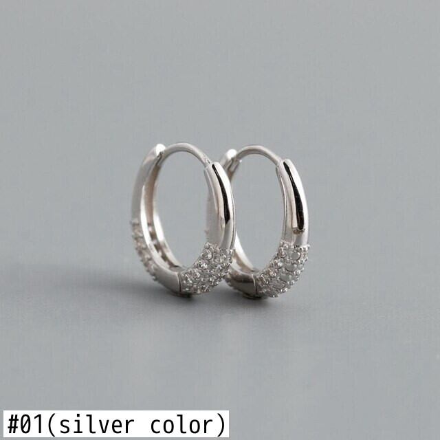 送料無料 ANENJERYシルバーカラージルコンフープピアスレディースフレンチゴールドシルバーピアスジュエリー イヤリング リング 指輪 銀 アクセサリー AE165538397299437