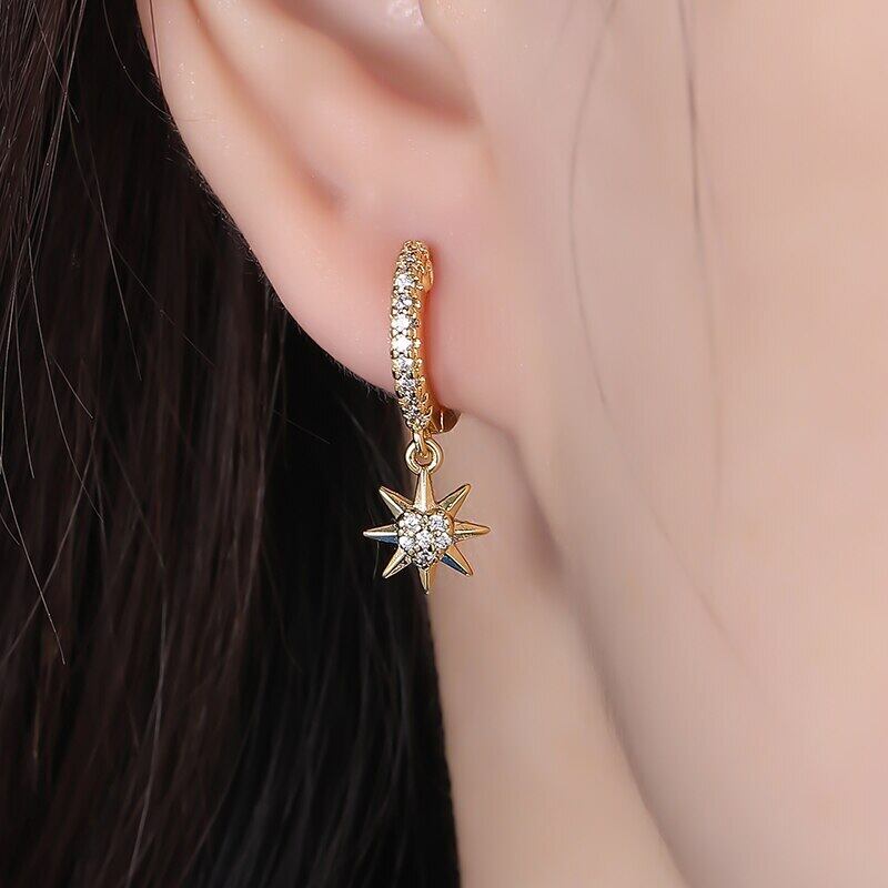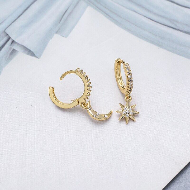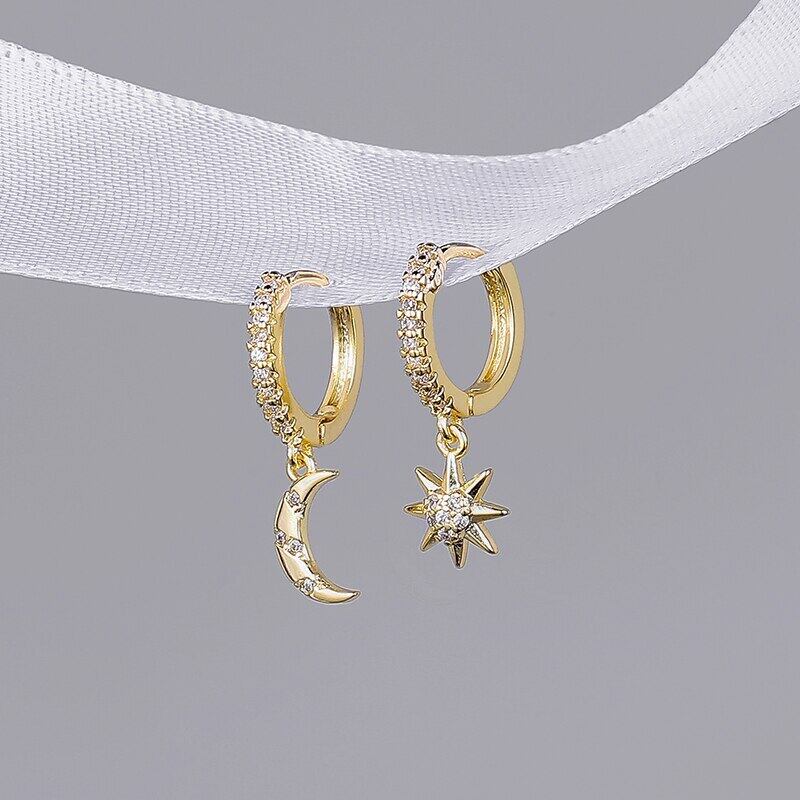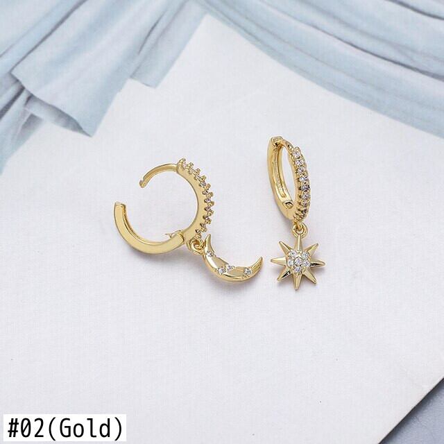 送料無料 ANENJERYシルバーカラー銅フルジルコンムーンとスターハート非対称ハギーフープピアス女性ジュエリーギフト イヤリング リング 指輪 銀 アクセサリー AE165525332080090