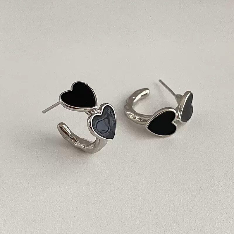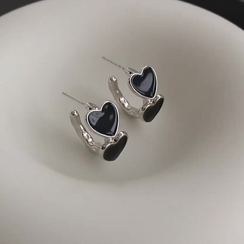 送料無料 ANENJERYシルバーカラーブラックラブハートスタッドピアスレディースヴィンテージクールトレンドオールマックデリケートライトラグジュアリージュエリー イヤリング リング 指輪 銀 ビンテージ アクセサリー AE165581069262285