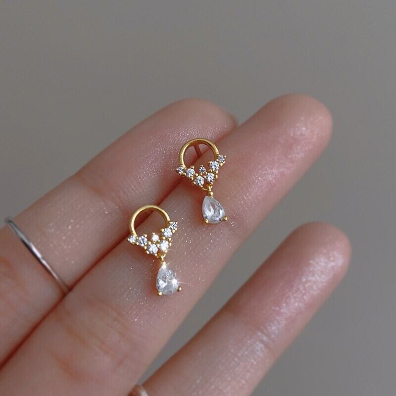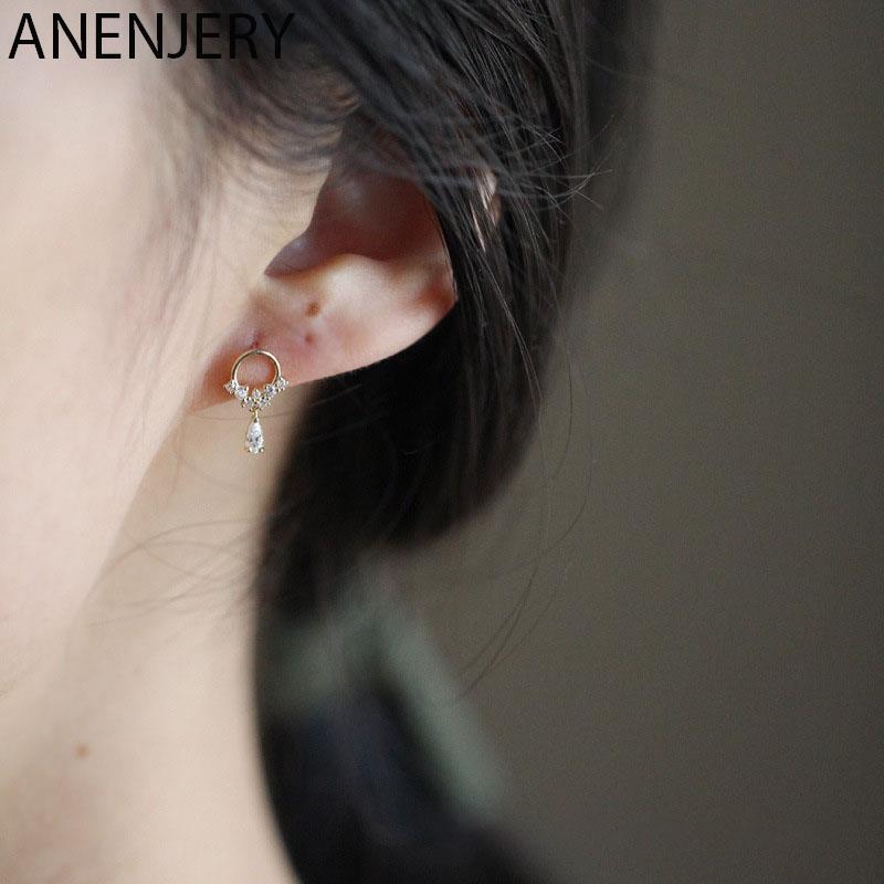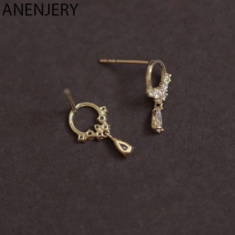 送料無料 ANENJERYシルバーカラー銅シャイニージルコンリースウォータードロップテルスタッドピアス女性ダニティジュエリーギフト イヤリング リング 指輪 銀 アクセサリー AE165586335036442