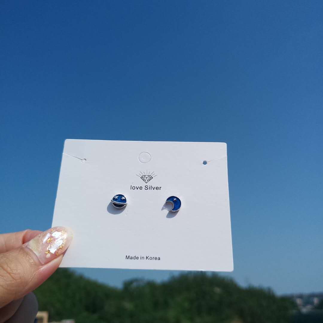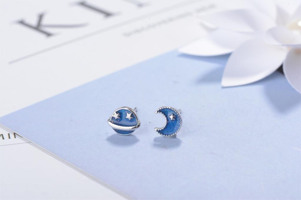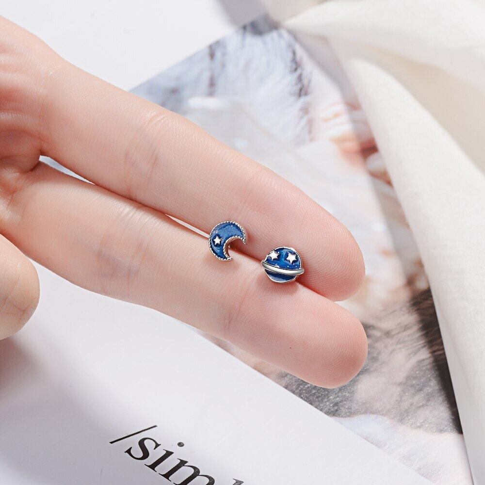送料無料 ANENJERYシルバーカラースパークリングスタームーンプラネットギャラクシー非対称スタッドピアスジュエリーガールクリスマスギフトS-E612 イヤリング 指輪 銀 アクセサリー AE165582139207773