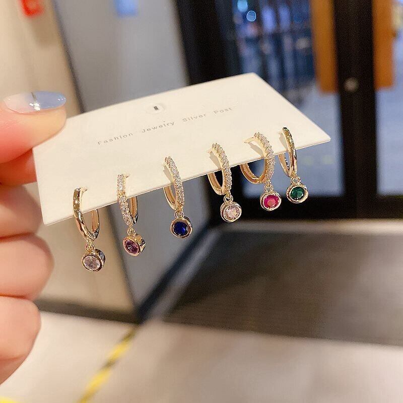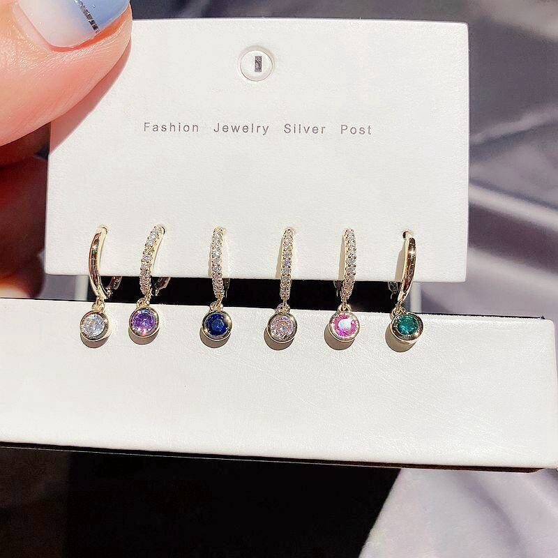 送料無料 カラフルレインボーラウンドクリスタル6ピースフープピアスセットレディースジルコンクリスマスピアスセットジュエリーギフトS-E1278 イヤリング リング 指輪 アクセサリー AE165576494194950