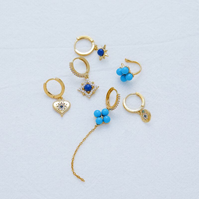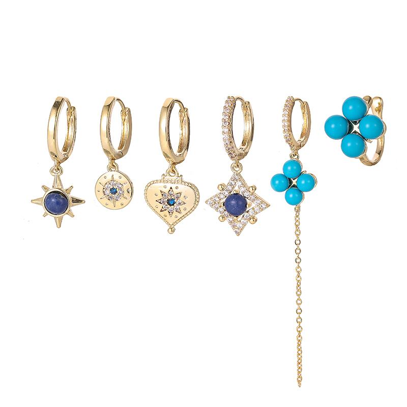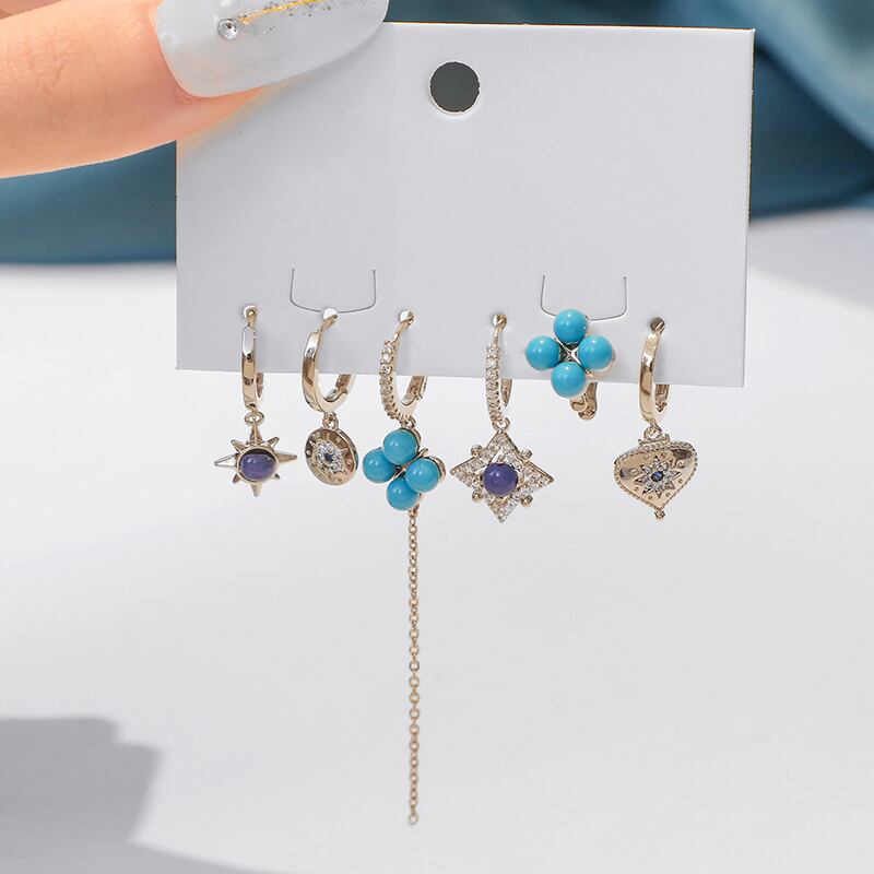 送料無料 ANENJERYジルコンブルーバルーンラブハートスターチェーンテルフープピアスステートメント6-ピースピアスセット イヤリング リング 指輪 アクセサリー AE165544528393277