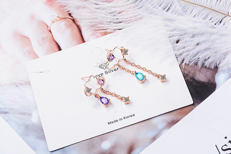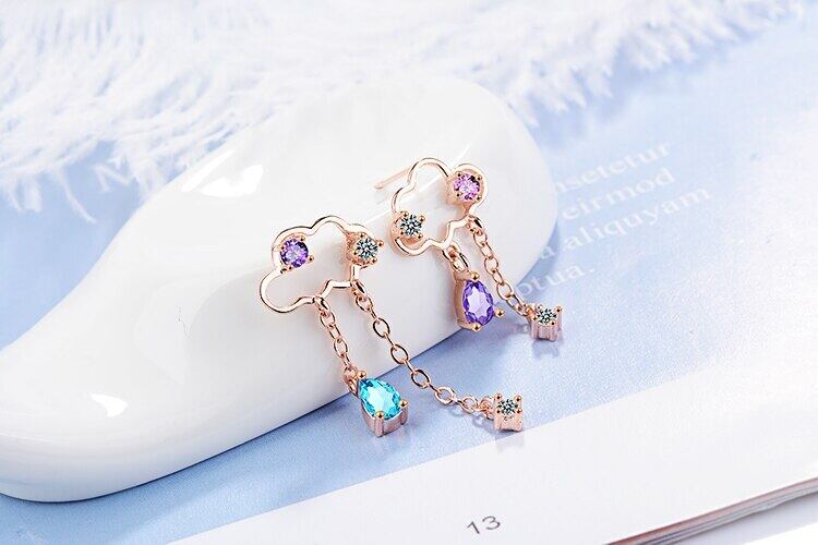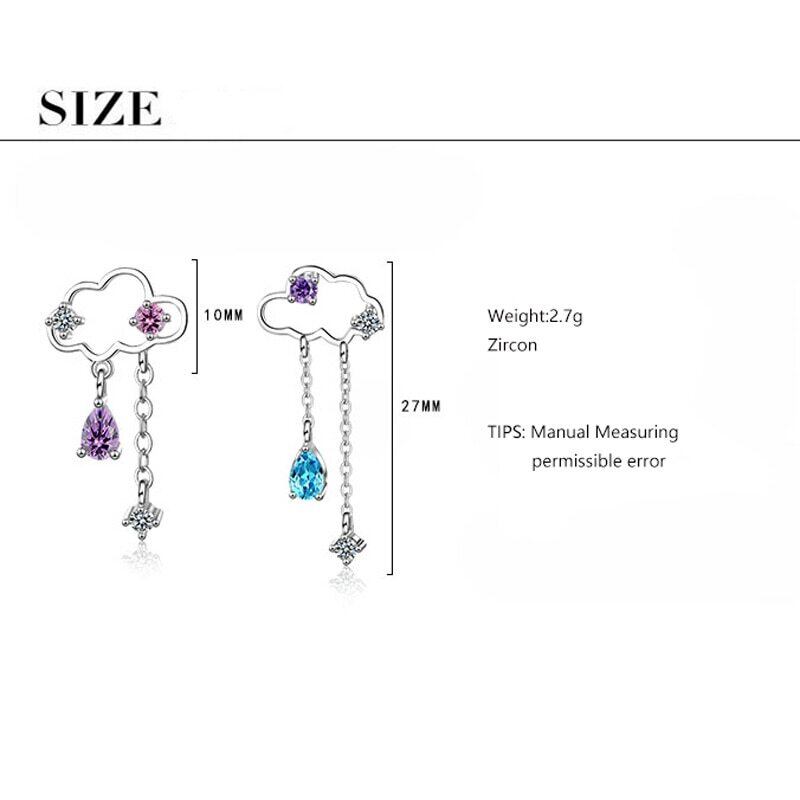 送料無料 ANENJERYシルバーカラー非対称クラウドイヤリングシルバーカラーカラージルコンウォーターテルイヤリング女性oorbellenS-E810 レッド 指輪 銀 アクセサリー AE165532421541039