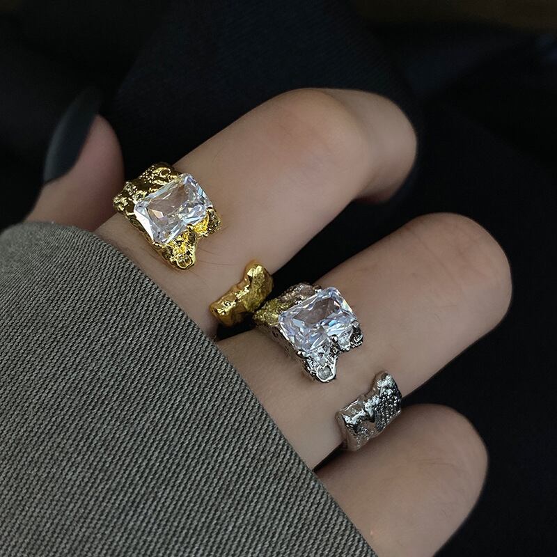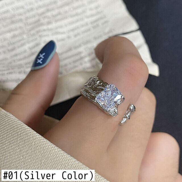 送料無料 ANENJERYシルバーカラー銅ジルコン不規則な溶岩テクスチャリングレディースシャイニーライトラグジュアリークリエイティブアクセサリーホリデーギフト 指輪 銀 アクセサリー AE165512449574145