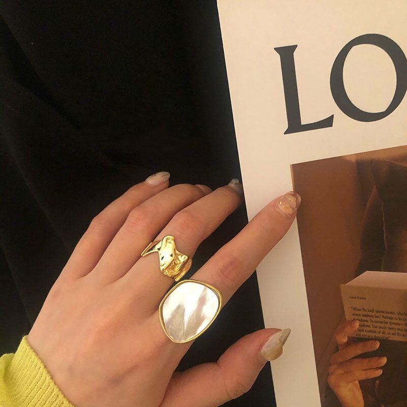 送料無料 ANENJERYシルバーカラーレトロ誇張シェルゴールドリング女性ミニマリストステートメント幾何学的なジュエリーギフトS-R886 指輪 銀 アクセサリー AE16554922881304