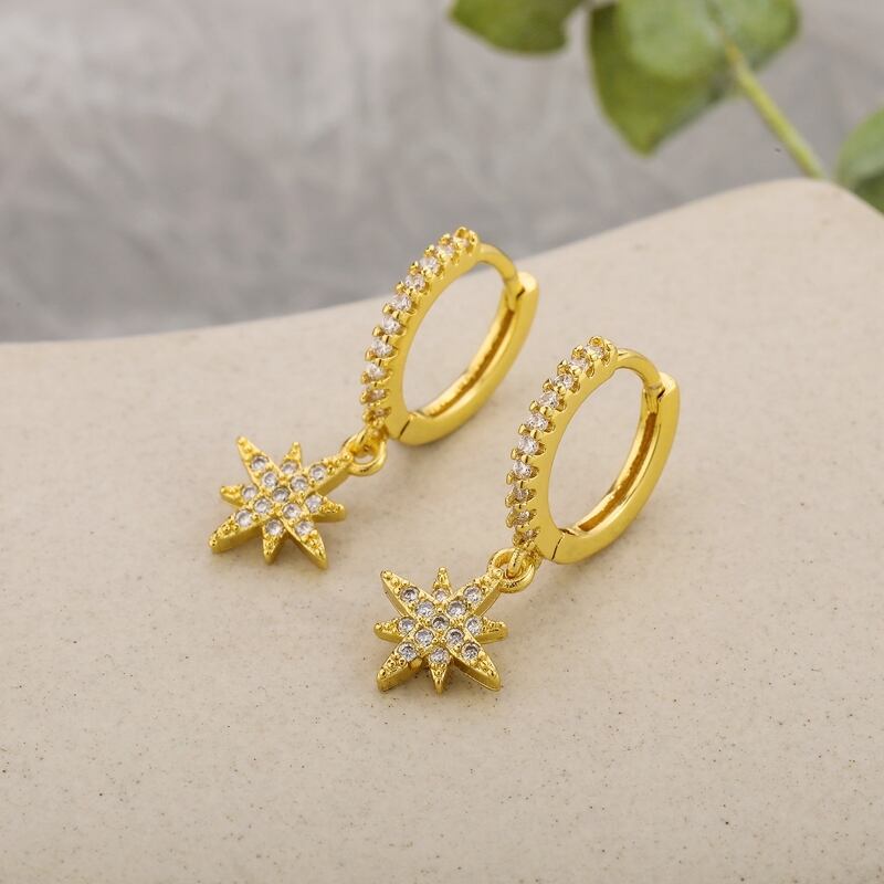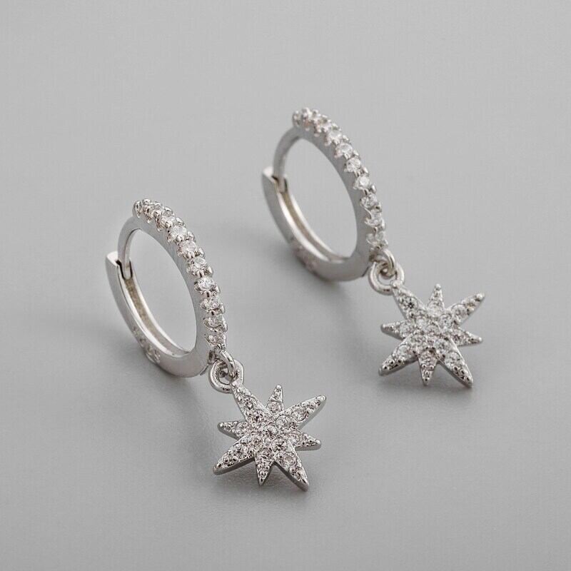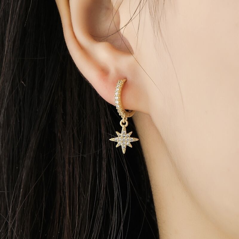 送料無料 ANENJERYシルバーカラースターフープイヤリング女性舗装キュービックジルコンゴールドジュエリーギフト 銀 アクセサリー AE165590662884913