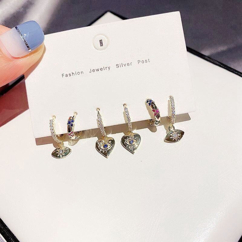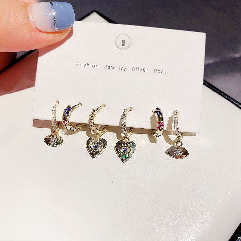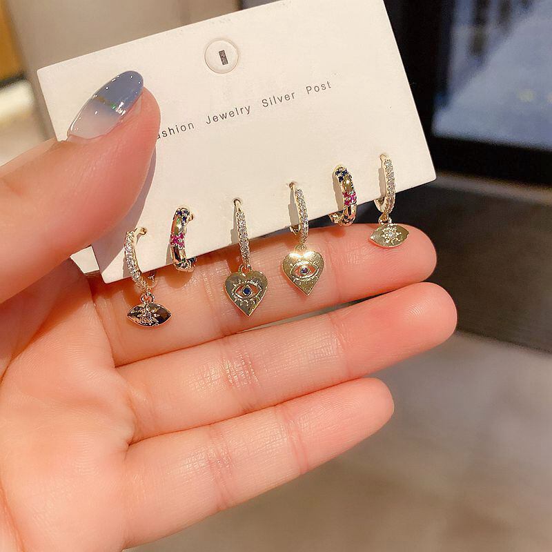 送料無料 ANENJERYカラフルレインボーストーンラブハートアイペンダントフープピアス女性6ピースVinatgeジュエリーギフトS-E1279 イヤリング リング 指輪 アクセサリー AE16558871004565