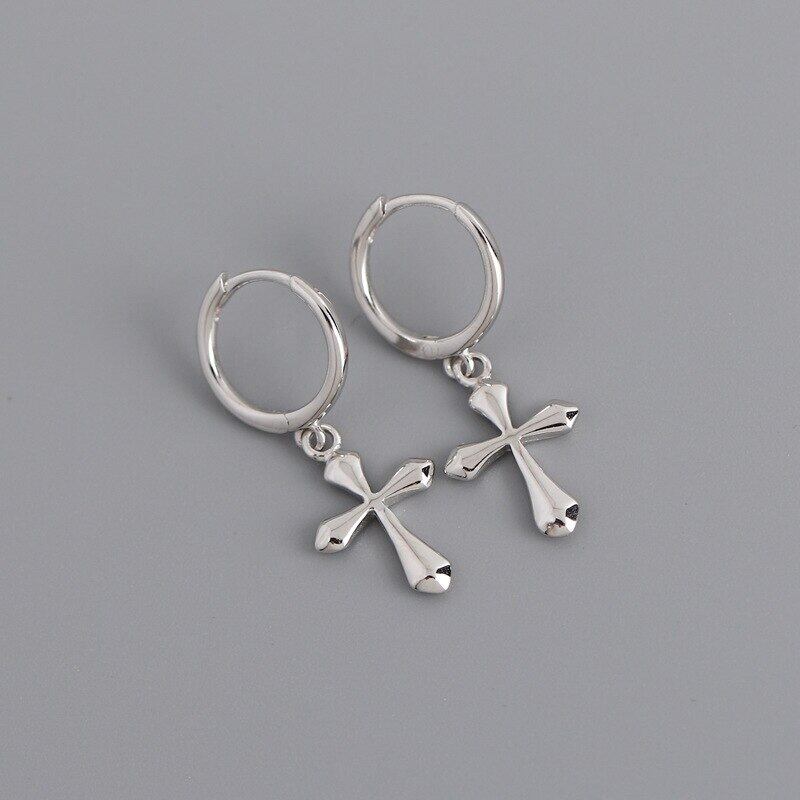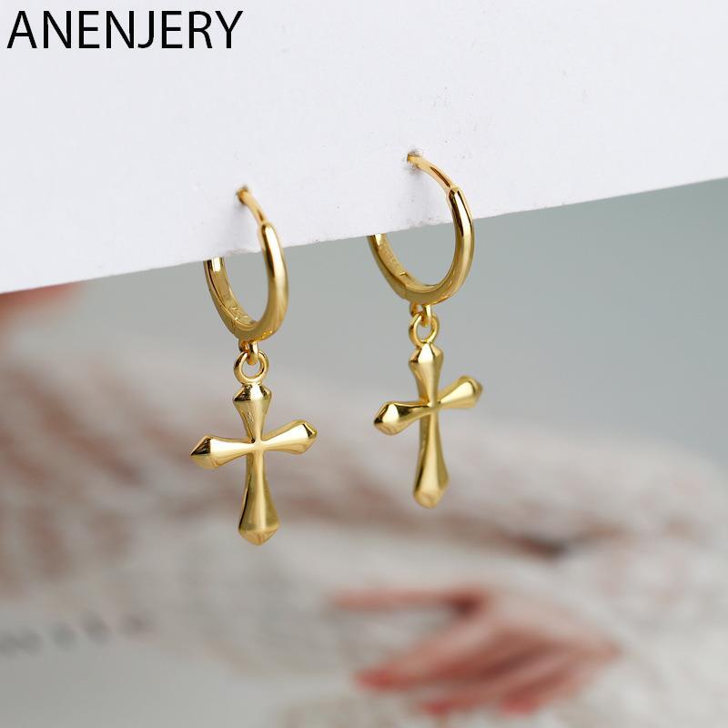 送料無料 ANENJERYシルバーカラークロスフープイヤリング女性男性幾何学的イヤリングパーティージュエリー2022 指輪 銀 アクセサリー AE165547855448856