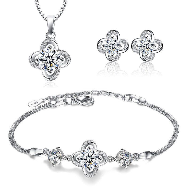送料無料 ANENJERYラグジュアリーシルバーカラーウェディングネックレスブレスレットイヤリングセットラブツイストフラワージルコンブライダルジュエリーセット レース フラワーデザイン 銀 アクセサリー AE165532373193839