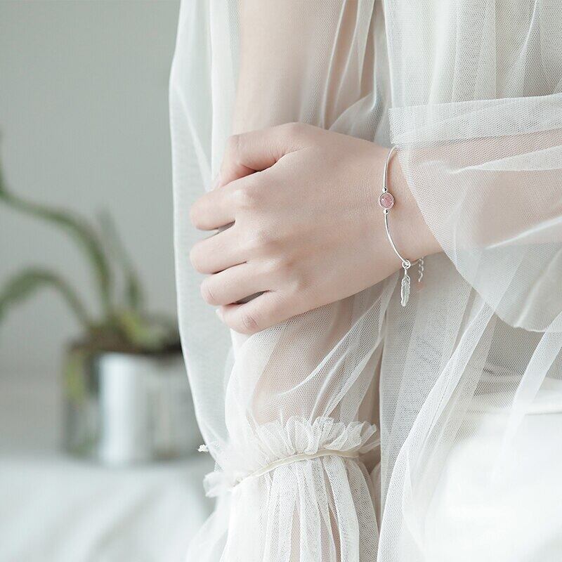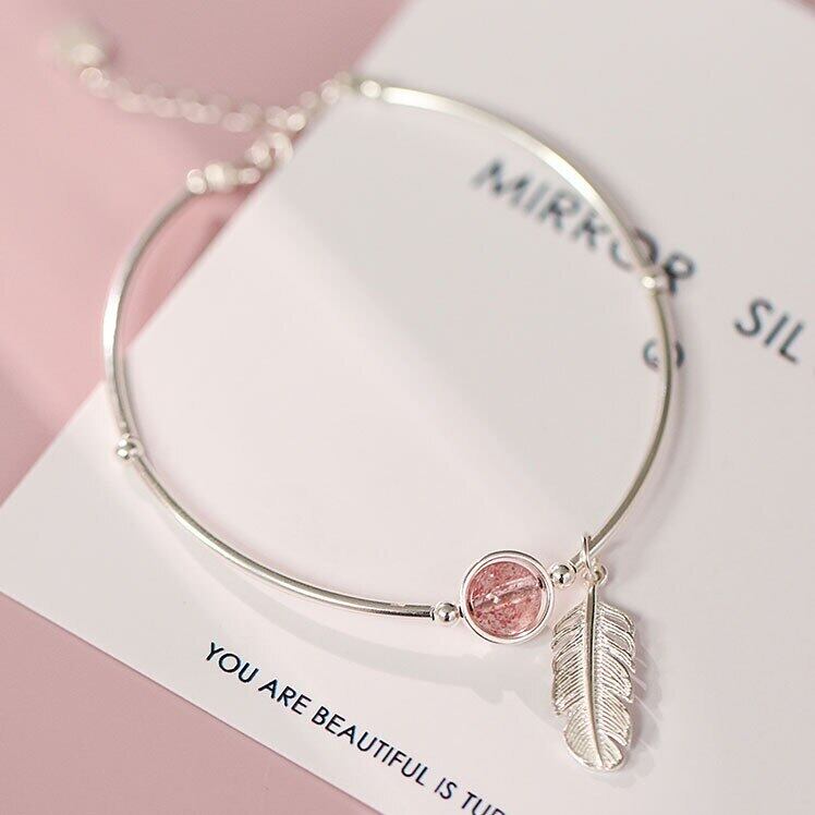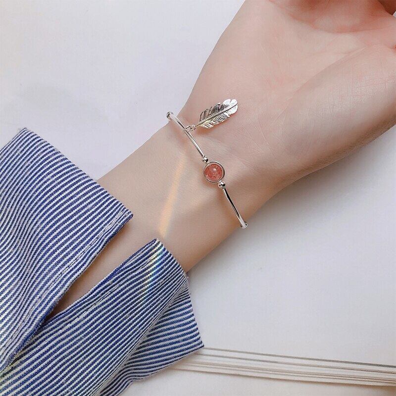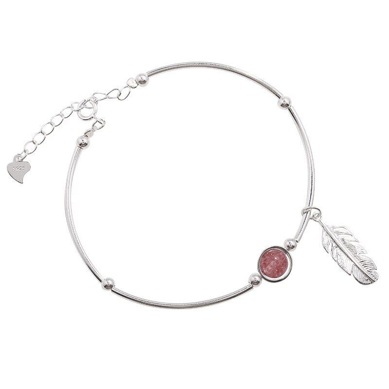 送料無料 ANENJERYシルバーカラーストロベリークリスタルビーズバングルブレスレットスウィートフェザーペンダントブレスレットレディースジュエリーS-B374 大人ガーリー キュート カジュアル 銀 アクセサリー AE165538876278898