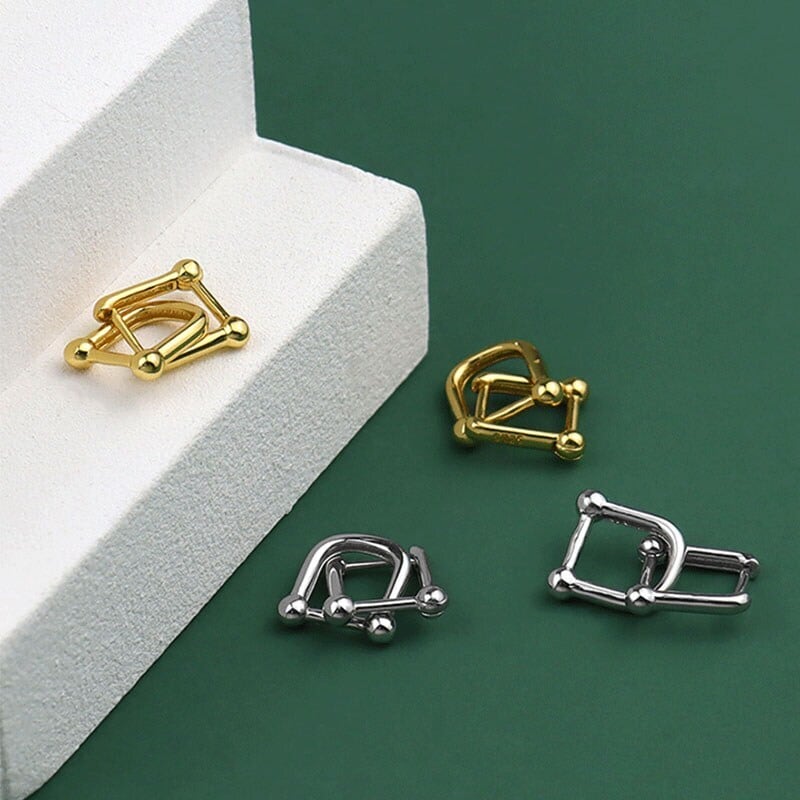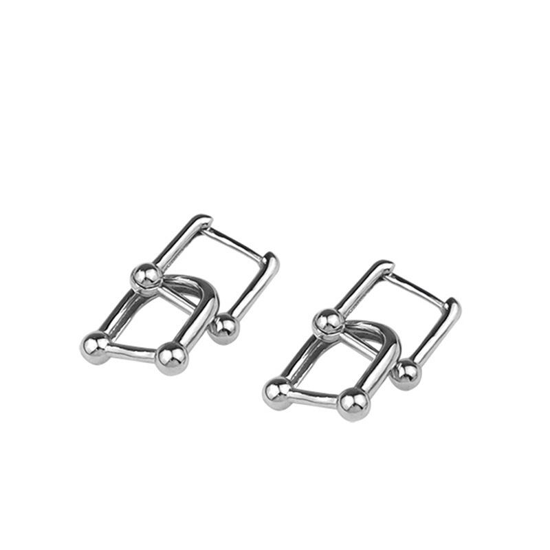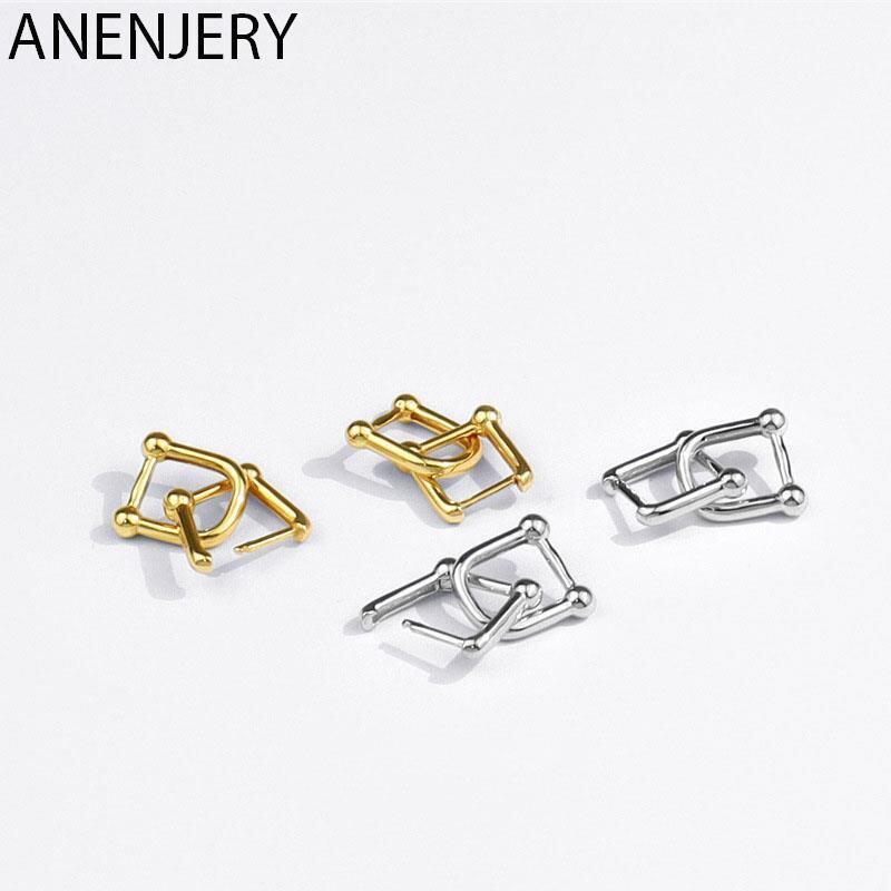 送料無料 ANENJERYシルバーカラーホースシューフープピアス女性幾何学的インターロックパーティージュエリーギフト イヤリング リング 指輪 銀 アクセサリー AE165567934719378
