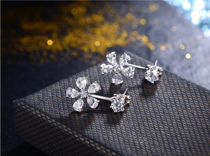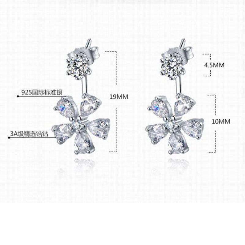 送料無料 ANENJERYシルバーカラースパークリングファイブリーブジルコンフラワーイヤリングレディースガールツーカラージュエリーoorbellenS-E524 指輪 フラワーデザイン 銀 アクセサリー AE165574366850755