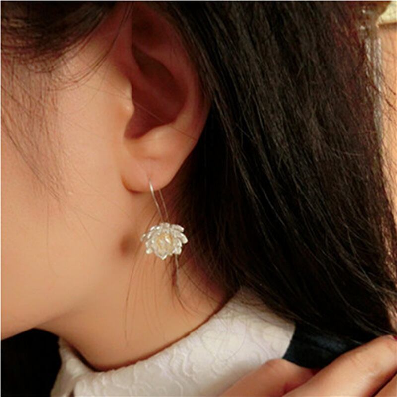送料無料 ANENJERYシルバーカラーハンドメイドロータスフラワーフックピアスダブルカラーワイヤードローイングイヤリングジュエリーレディースS-E124 指輪 フラワーデザイン 銀 アクセサリー AE16552037579803