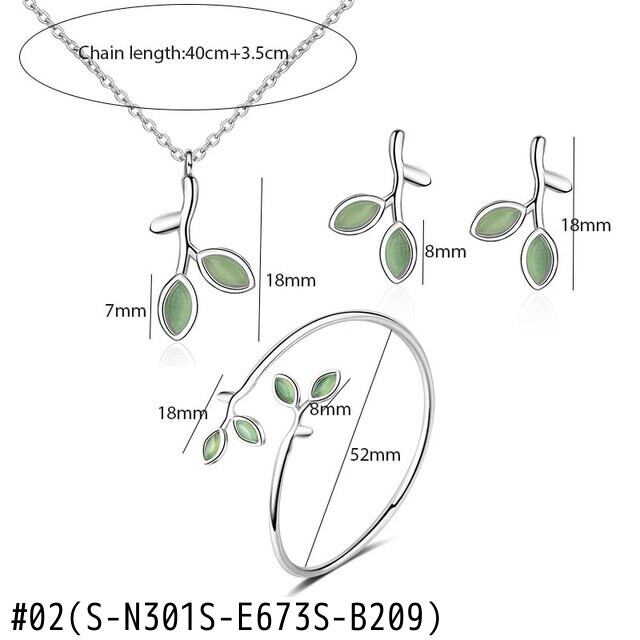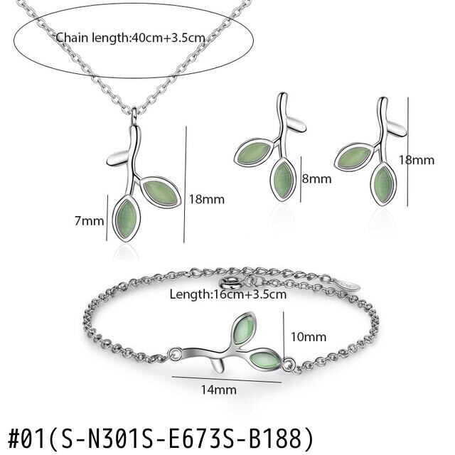 送料無料 ANENJERYシルバーカラーオパールリーフバッドネックレス+イヤリング+ブレスレットレディースジュエリーセットギフト レース 蛋白石 指輪 銀 アクセサリー AE165520430795047