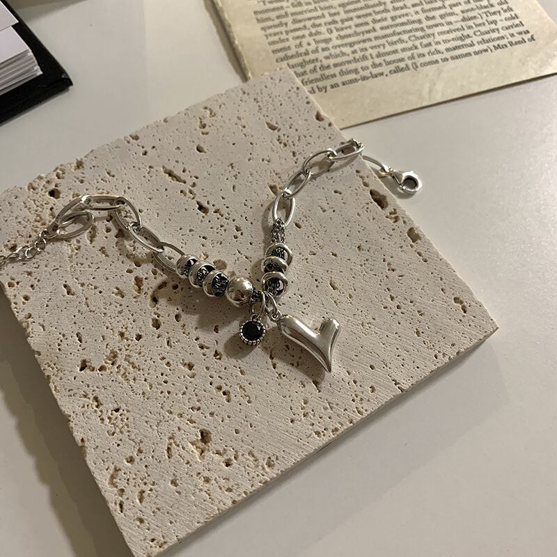 送料無料 ANENJERYシルバーカラーハートブレスレットレディースビーズブレスレットジュエリーギフト 銀 アクセサリー AE165553602331652