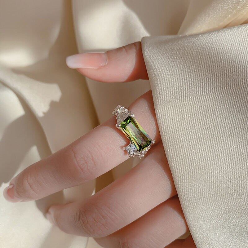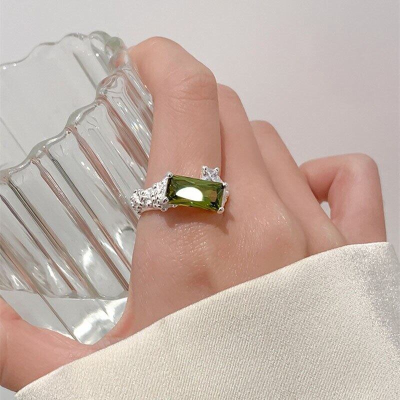 送料無料 ANENJERYスクエアグリーンジルコンオープンリングレディースラグジュアリーオープンフィンガーリングジュエリー 指輪 スクウェア アクセサリー AE165588536032440