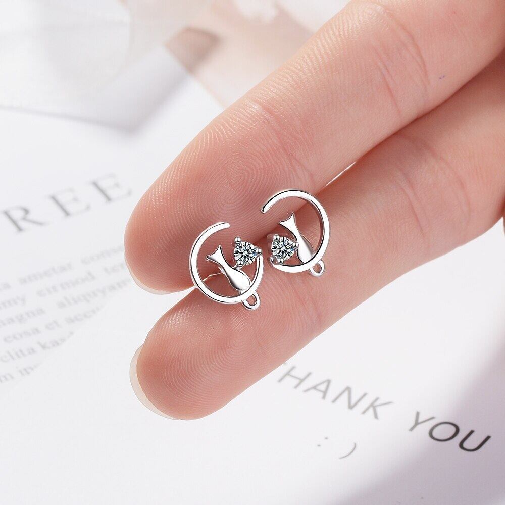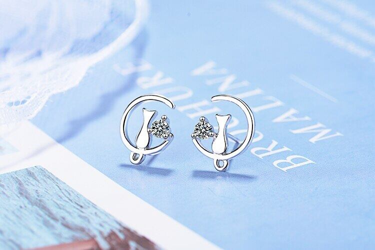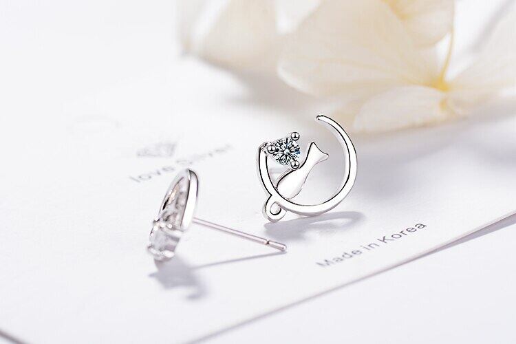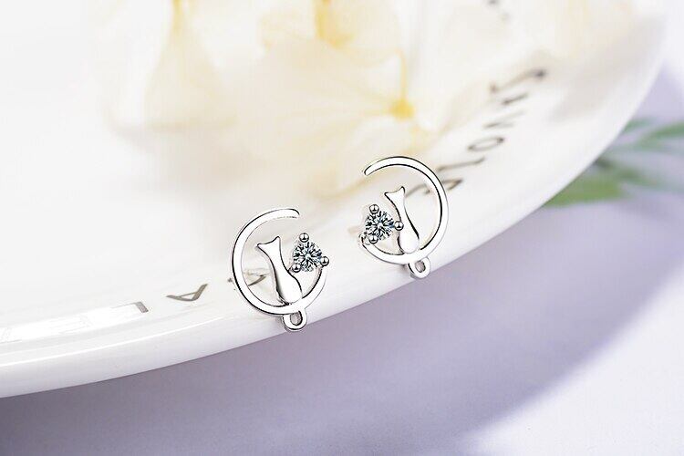 送料無料 ANENJERYシルバーカラートレンディなファッショオキャットオンザムーンスタッドピアスかわいいアニマルジュエリー女性ファションギフト発送S-E849 イヤリング 大人ガーリー スウィート キュート カジュアル 銀 アクセサリー AE165558409104127