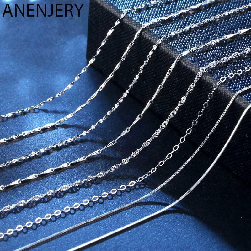 送料無料 ANENJERYシルバーカラー鎖骨チェーン水波ツイストスネークバーシンガポールボックス45CM長さチェーンネックレスDIYペンダント使用 レース 銀 アクセサリー AE1655374281163