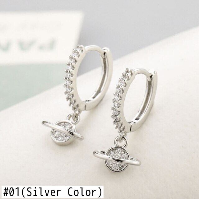 送料無料 ANENJERYシルバーカラーユニバースフープピアス女性メンズプラネットピアスジュエリーステートメント イヤリング リング 指輪 銀 アクセサリー AE165580917907248