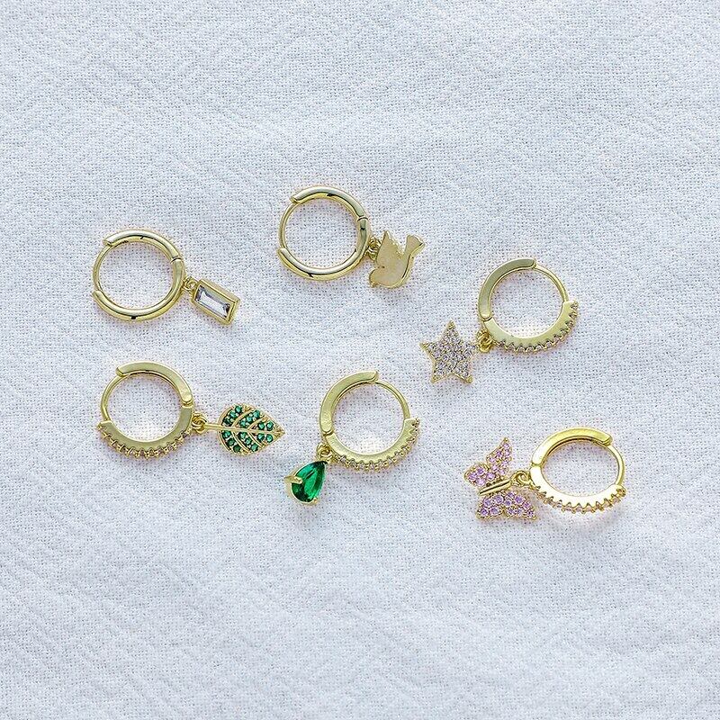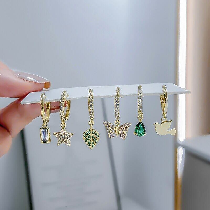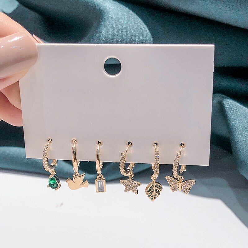 送料無料 ANENJERYシルバーカラー6ピースイヤリングセット葉スターバタフライウォータードロップフープピアス可憐なジュエリー 指輪 銀 アクセサリー AE165551004929260