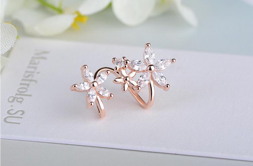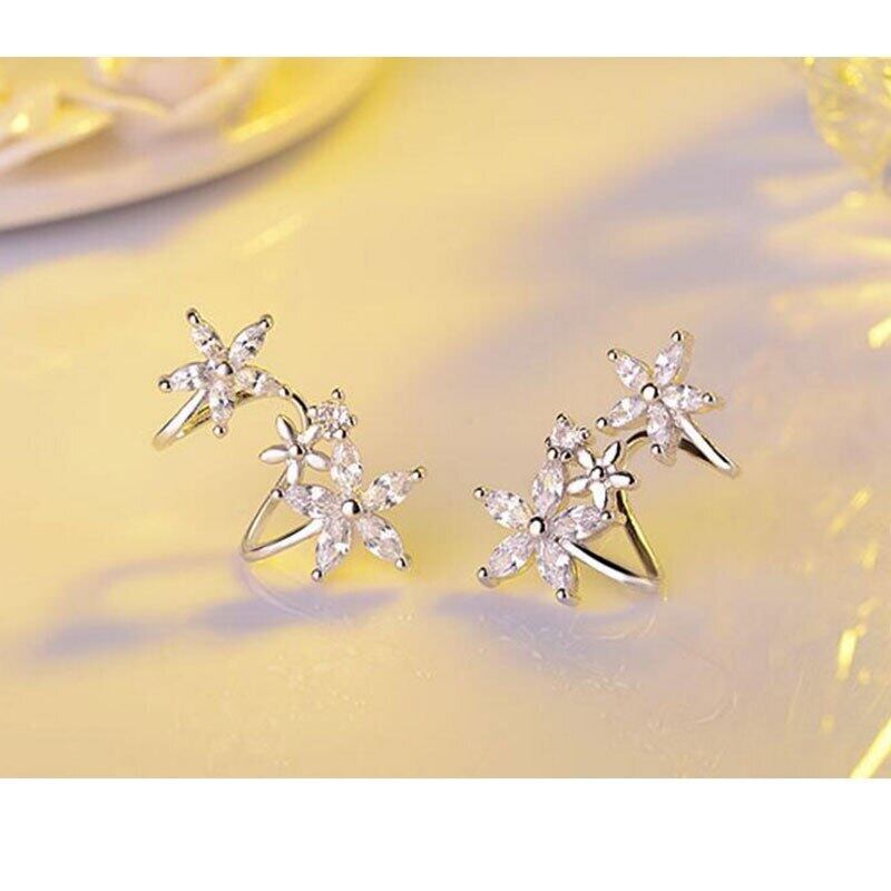 送料無料 ANENJERYシルバーカラーイヤーカフフラワークリップオンイヤリングクリスタルジルコンジュエリーレディースジュエリーS-E329 指輪 フラワーデザイン 銀 アクセサリー AE165557633612965