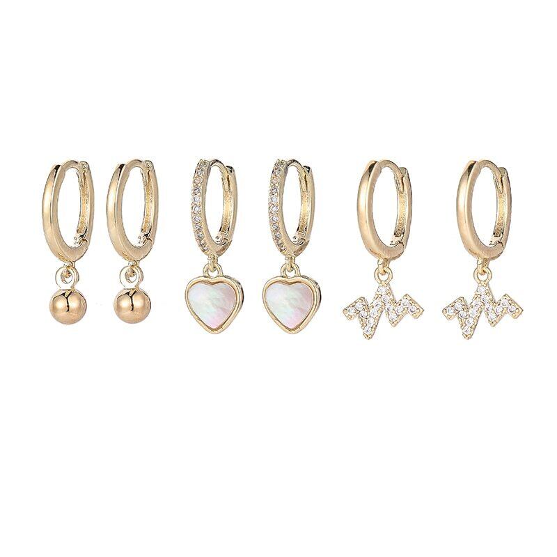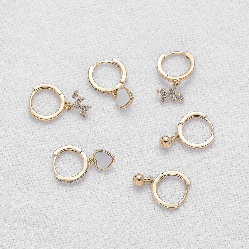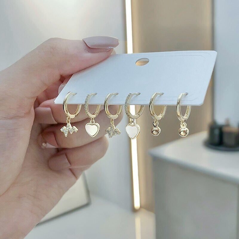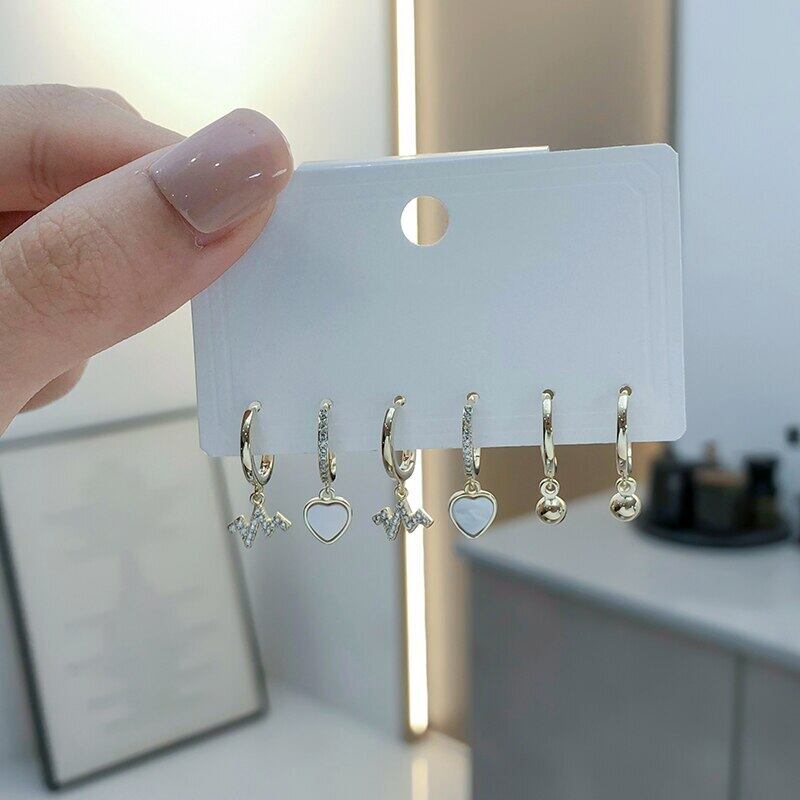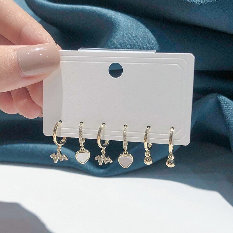 送料無料 ANENJERYシルバーカラーカッパージルコンナチュラルシェルハートビーズフープピアスレディースシンプル6ピースピアスセットガールギフト イヤリング リング 指輪 銀 天然 アクセサリー AE165575176962471