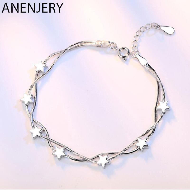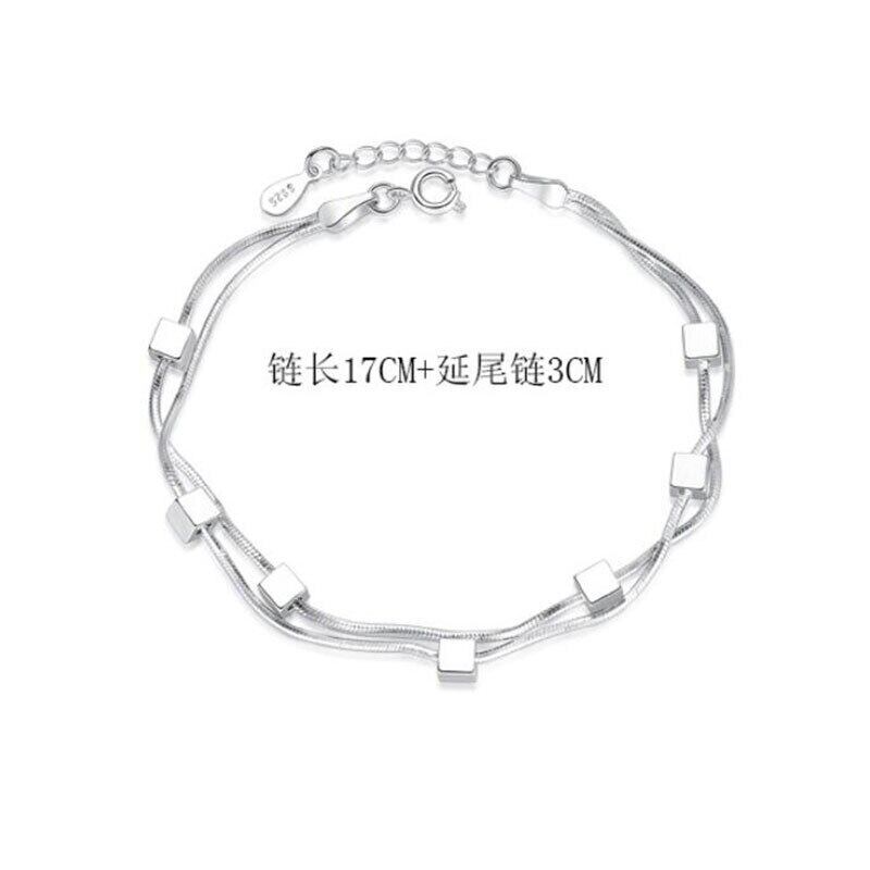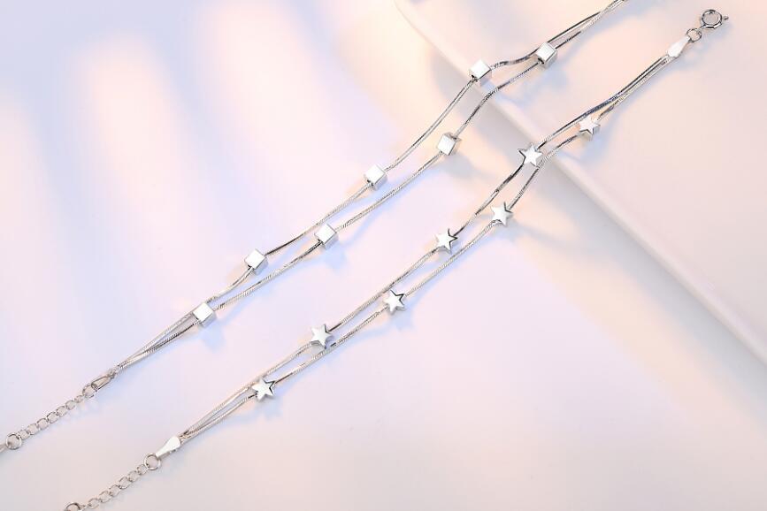 送料無料 ANENJERYシルバーカラーブレスレットダブルチェーンスクエアボックススターブレスレットアンクレットレディースパルシラS-B167 銀 スクウェア アクセサリー AE165563847786400
