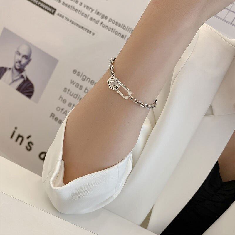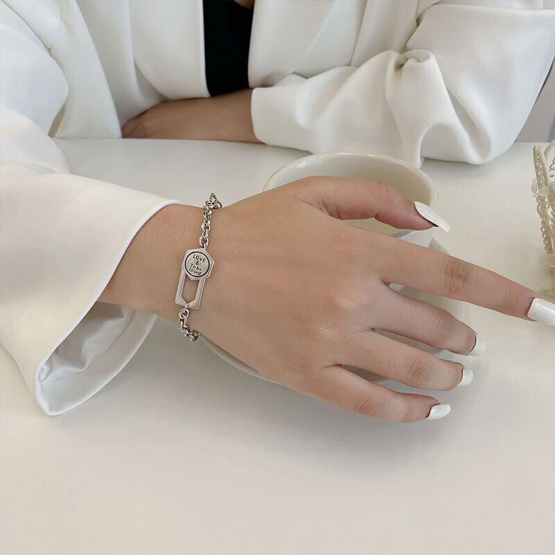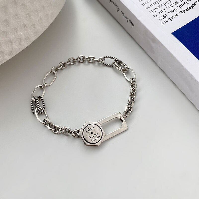 送料無料 ANENJERYシルバーカラー幾何学文字ブレスレットヴィンテージ手作り不規則チェーンブレスレット 銀 ビンテージ アクセサリー AE165522661679282