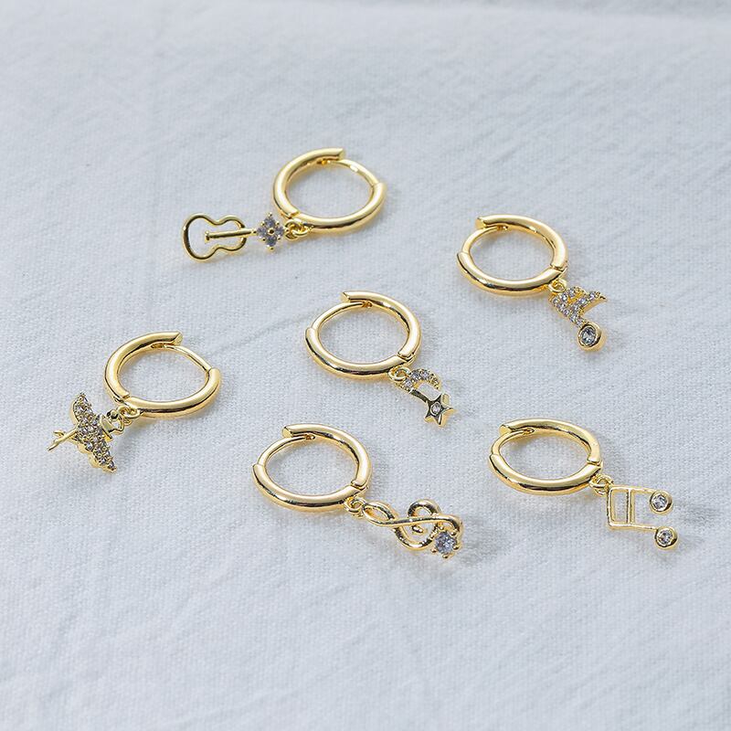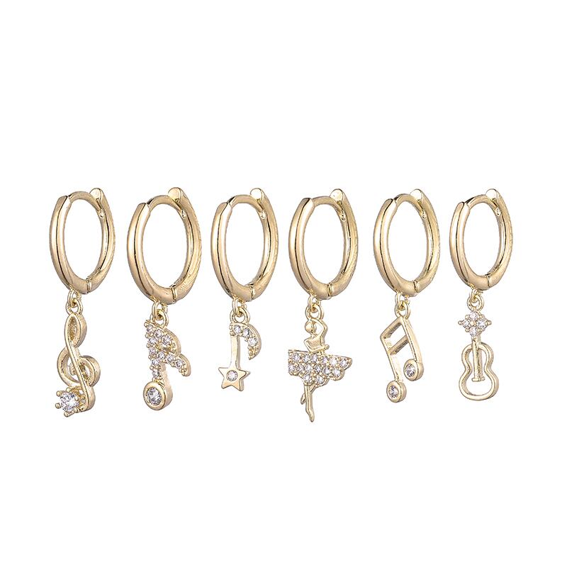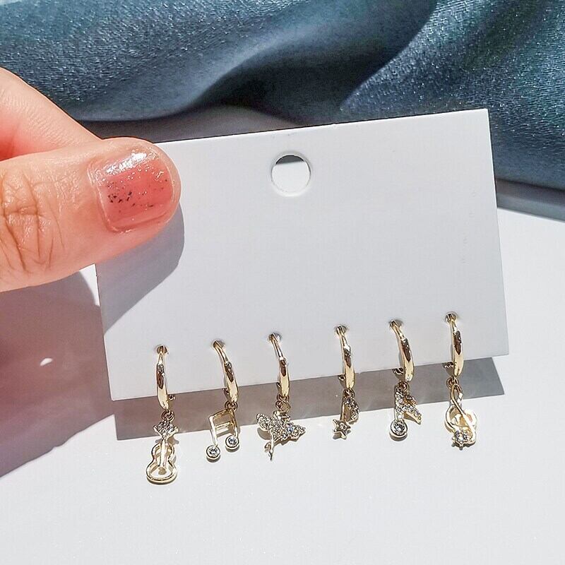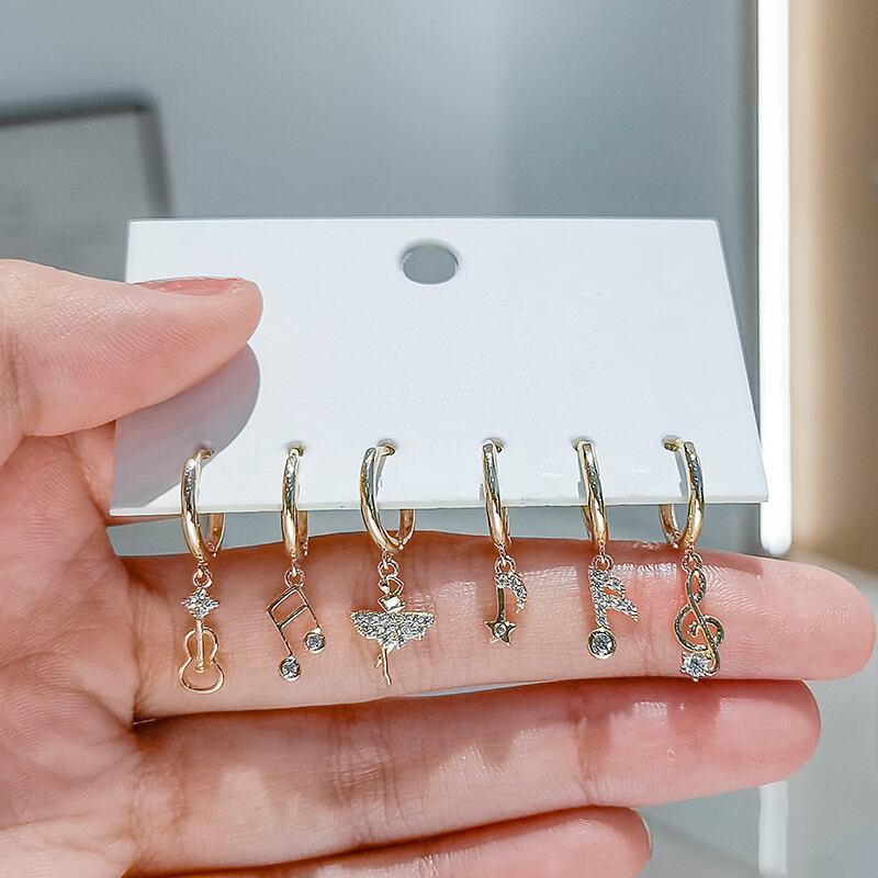 送料無料 ANENJERYシルバーカラージルコンダンスガールミュージックシンボルイヤリング女性クリエイティブゴールデン6ピースイヤリングセット 指輪 銀 アクセサリー AE165521665427811