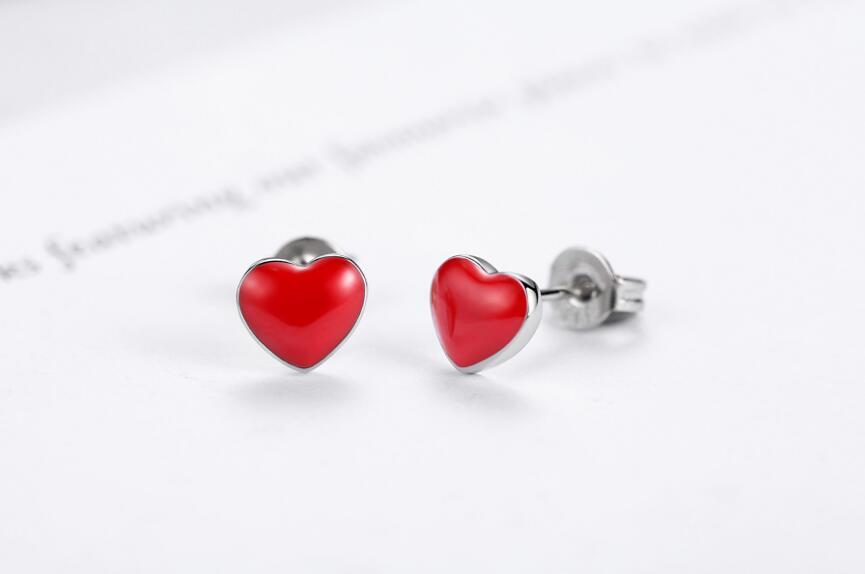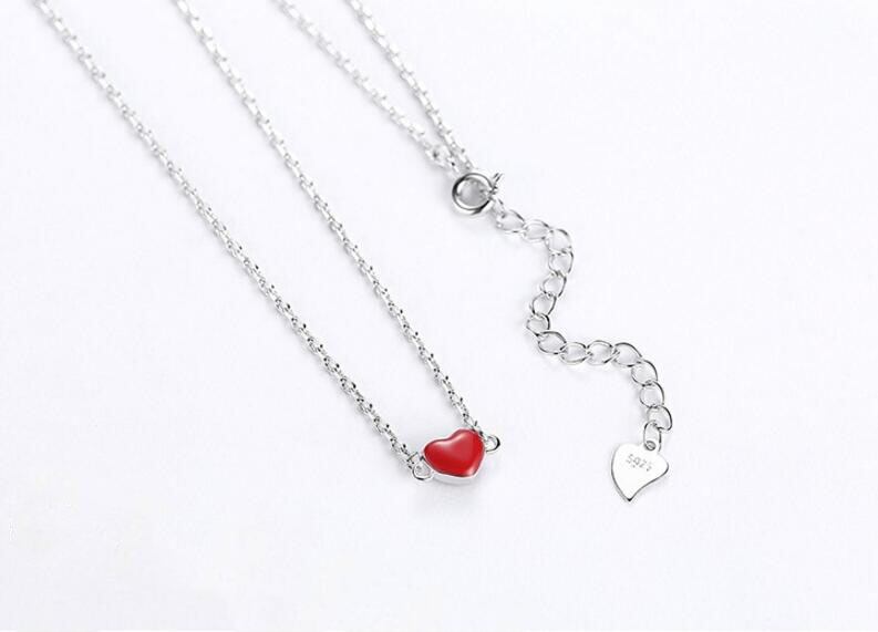 送料無料 ANENJERYシルバーカラーシンプルレッドハートネックレス/イヤリング/リング/ブレスレットレディースガールジュエリーセット レース 指輪 銀 アクセサリー AE165549276068620