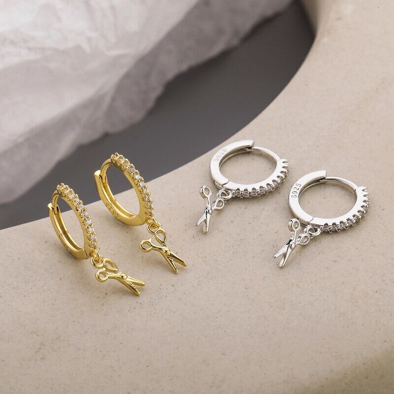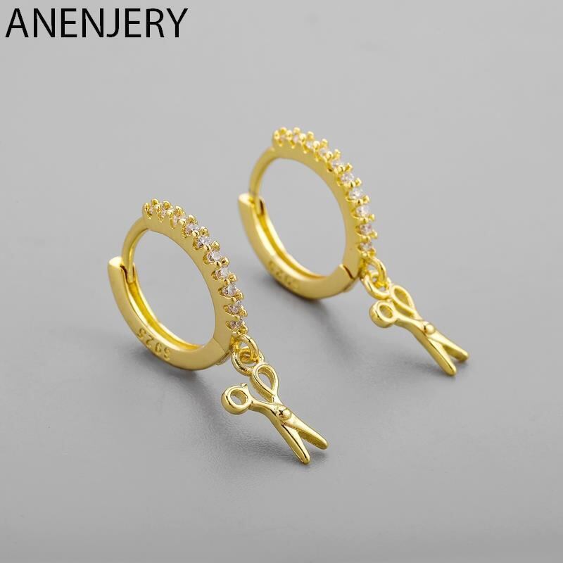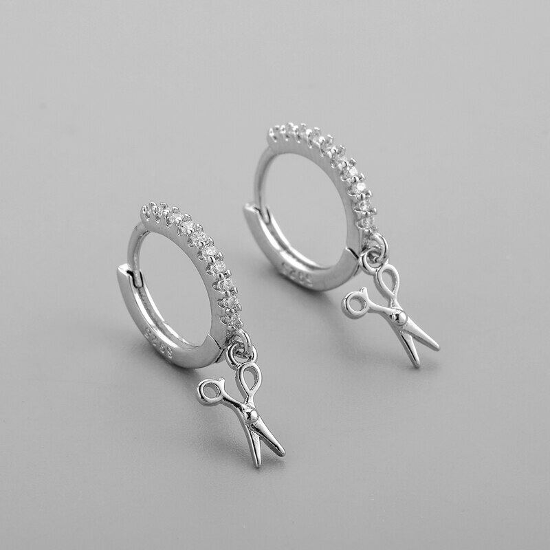 送料無料 ANENJERYシルバーカラーはさみフープピアス女性男性かわいいCZ耳ジュエリーギフト イヤリング 大人ガーリー スウィート キュート カジュアル リング 指輪 銀 アクセサリー AE165596794968170