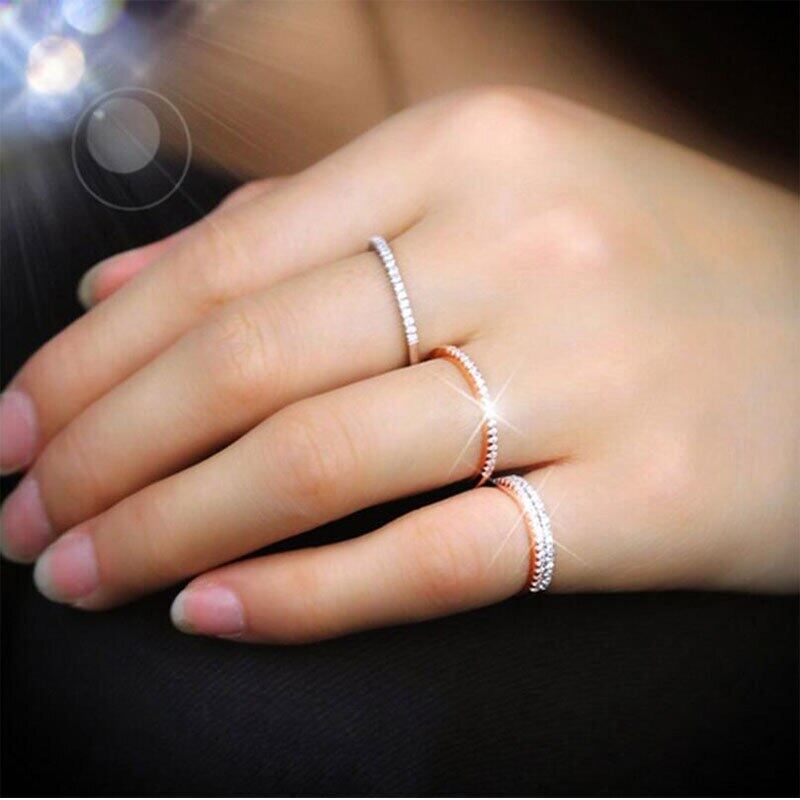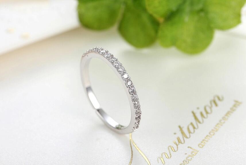 送料無料 ANENJERYシルバーカラーデリケートな2色シンプルなパヴェジルコンスパークリングアジャスタブルオープニングリングレディースパーティージュエリーS-R82 指輪 銀 アクセサリー AE165558131905321