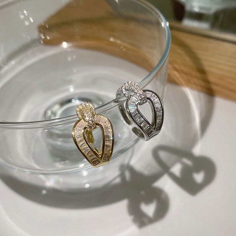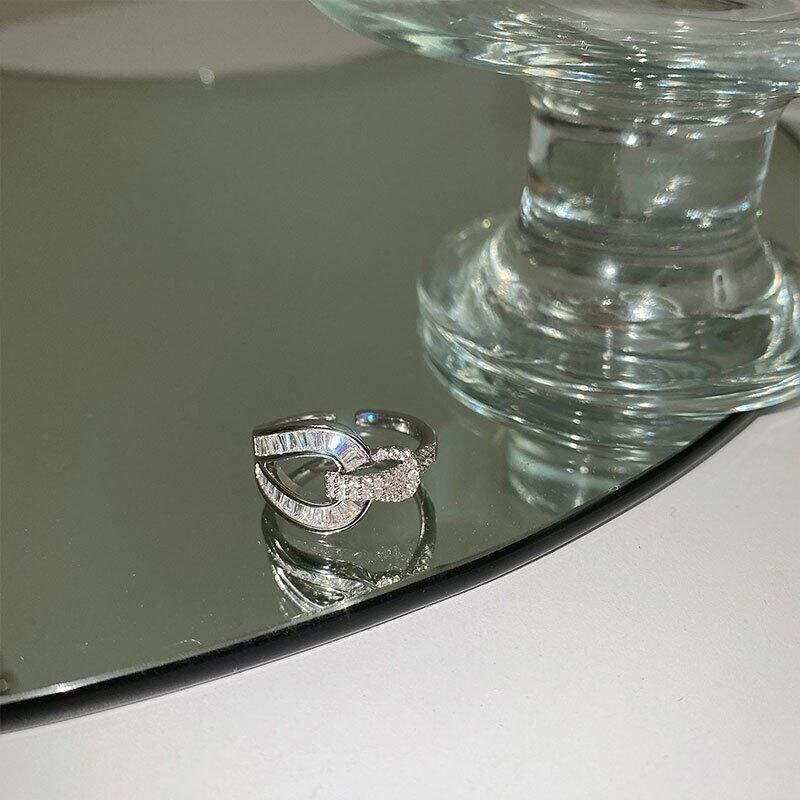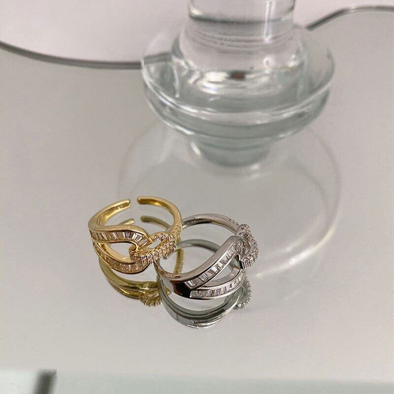送料無料 ANENJERYヴィンテージシルバーカラージルコンノットオープンリングシャイニーラグジュアリーゴールデンパーティーリング 指輪 銀 ビンテージ アクセサリー AE165538403658166