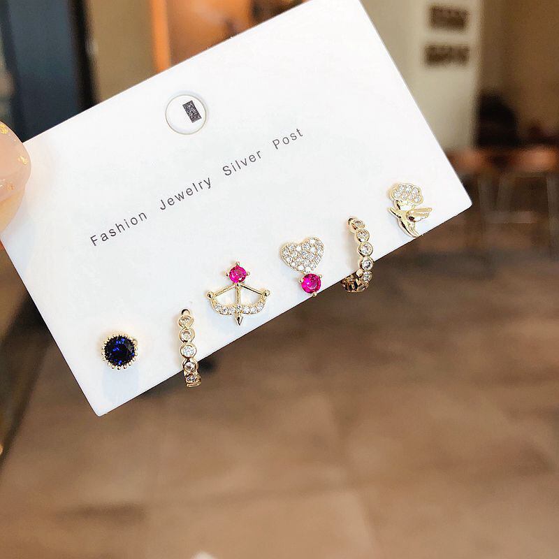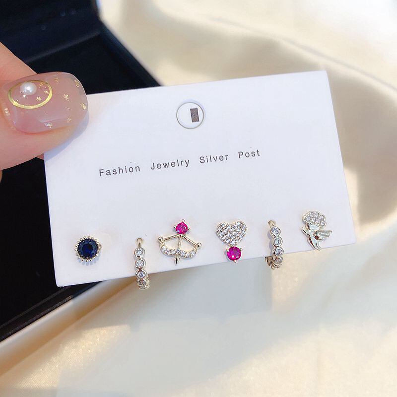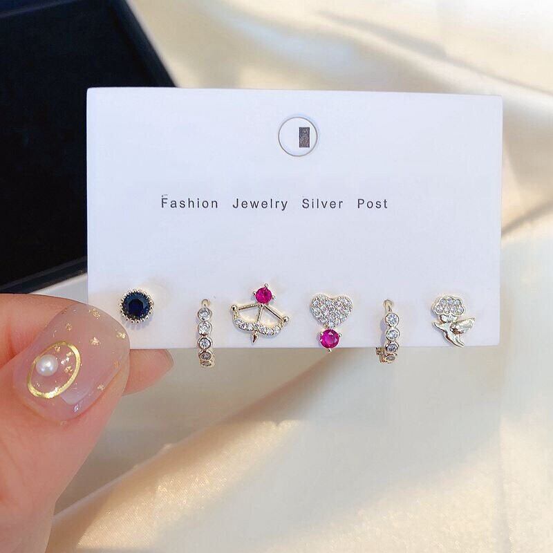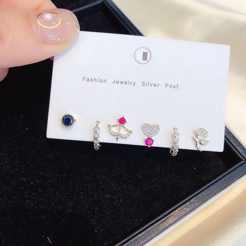 送料無料 ANENJERYキューピッドアローフラワースタッドピアスセットカラフルキュービックジルコン6ピースピアスセットS-E1203 イヤリング リング 指輪 フラワーデザイン アクセサリー AE16555822732730
