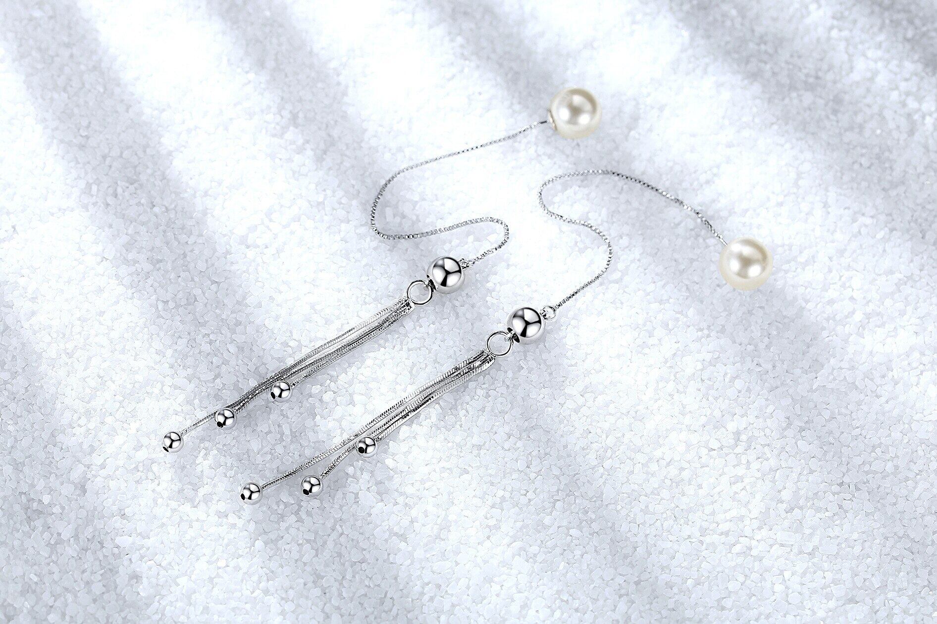 送料無料 ANENJERYシルバーカラーパールIrregularBeadsテルイヤーチェーンシルバーカラーロングイヤリング女性oorbellenS-E876 真珠 指輪 ビーズ 銀 アクセサリー AE165550607872194