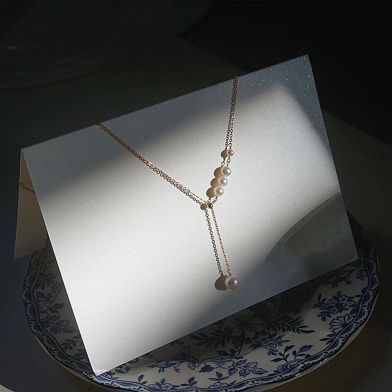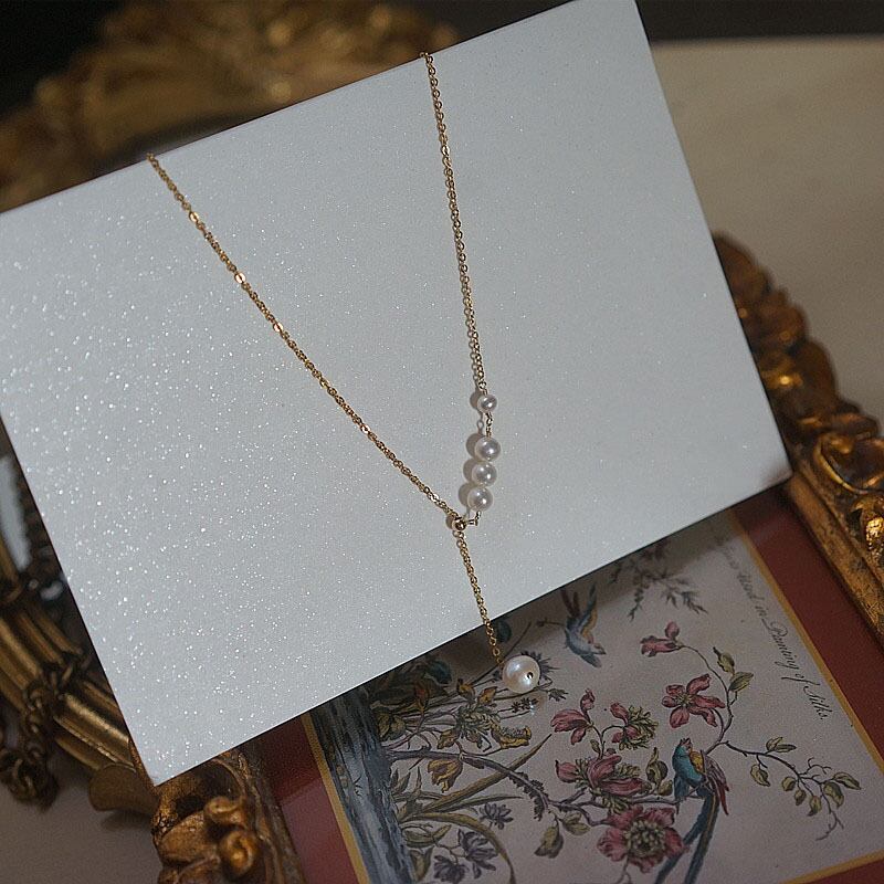 送料無料 ANENJERYシルバーカラーパールネックレス女性シンプルテンペラメントTelアジャスタブルネックレス鎖骨チェーンジュエリー レース 真珠 銀 アクセサリー AE165543475034884