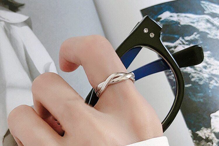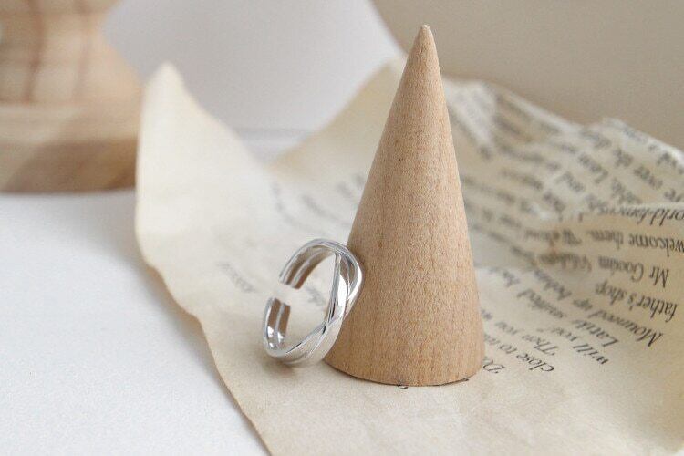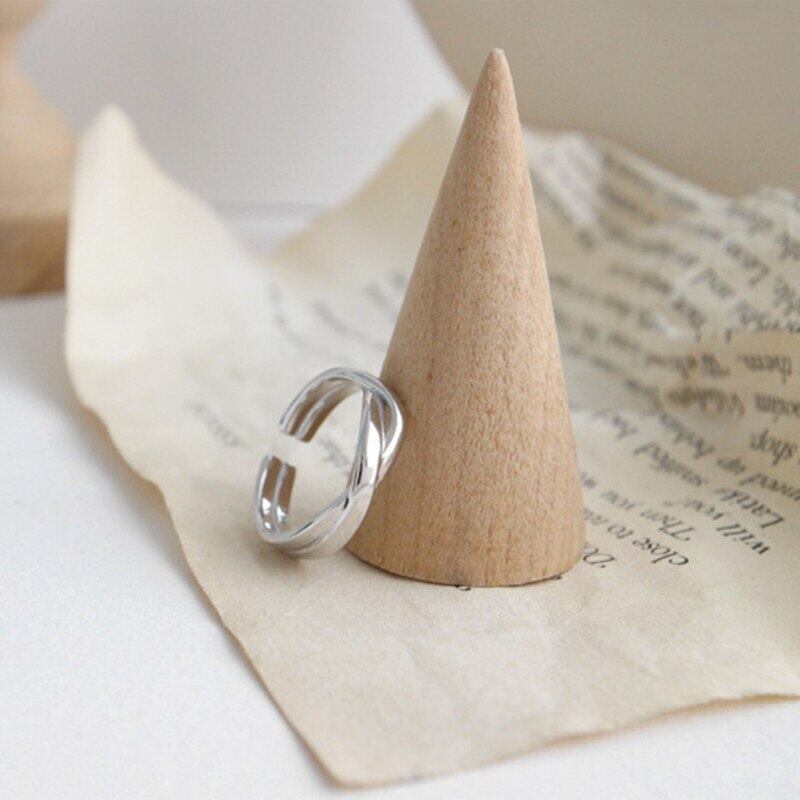 送料無料 ANENJERYシルバーカラーシルバーツイストウェーブスムースオープニングリングミニマリスト幾何学的不規則なウーブンリングレディースS-R580 指輪 銀 アクセサリー AE165541129871779