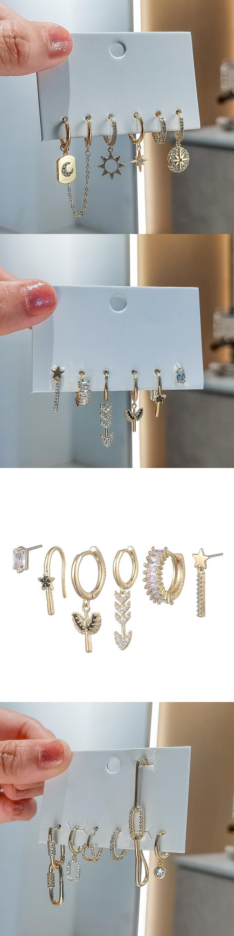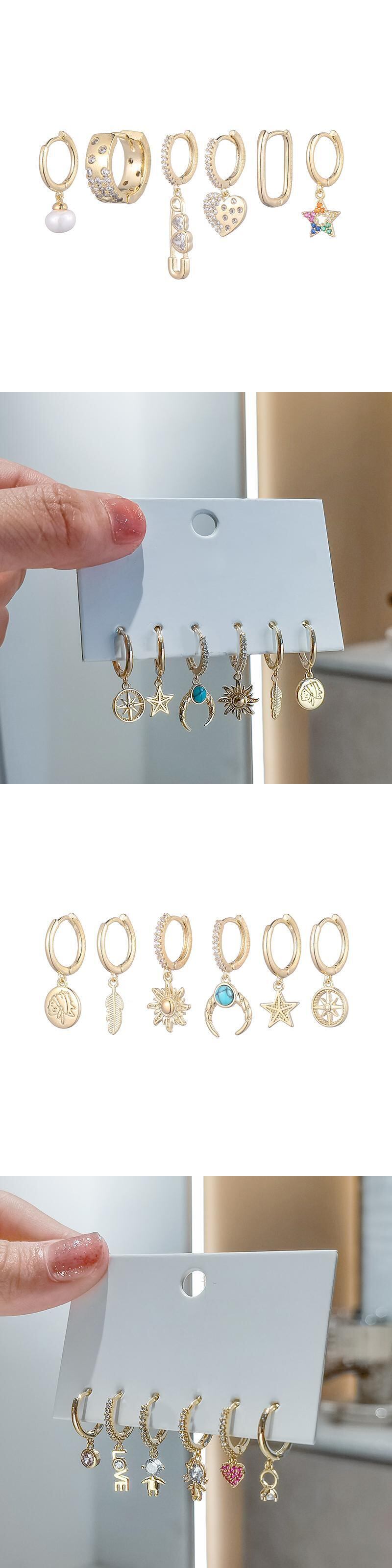 送料無料 ANENJERYシルバーカラーカッパージルコンムーンスターパールウォータードロップTel6ピースイヤリングセットシャイニーラグジュアリーハギーパーティージュエリー 真珠 銀 アクセサリー AE165539705594261