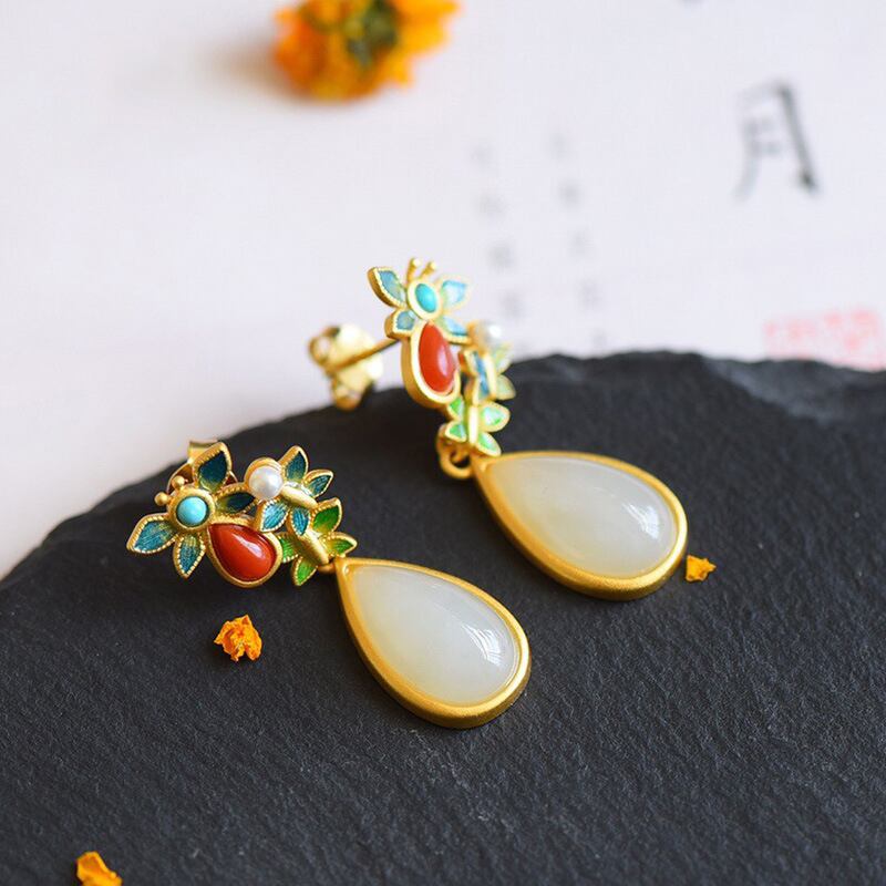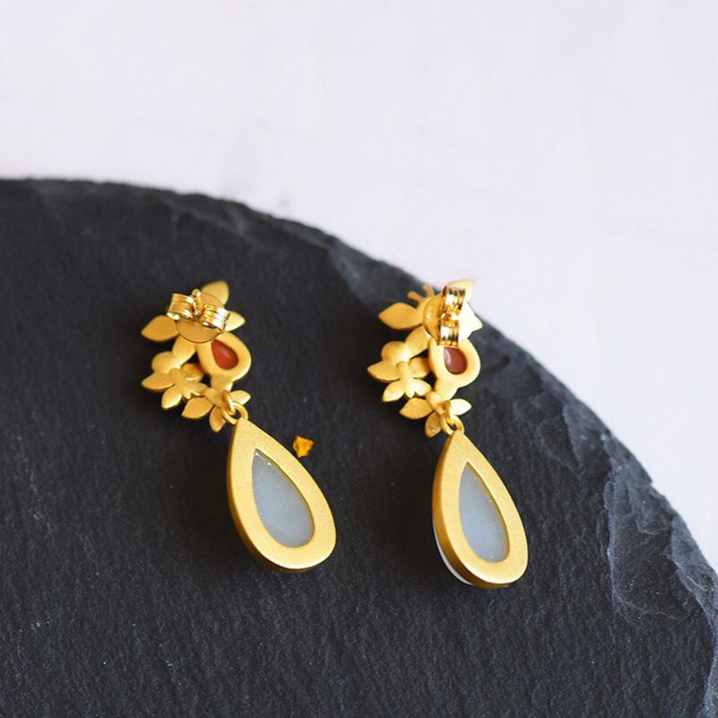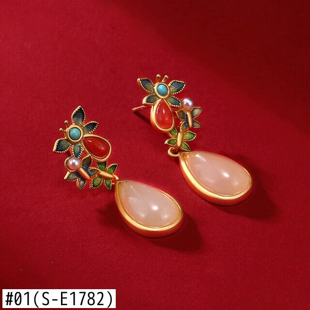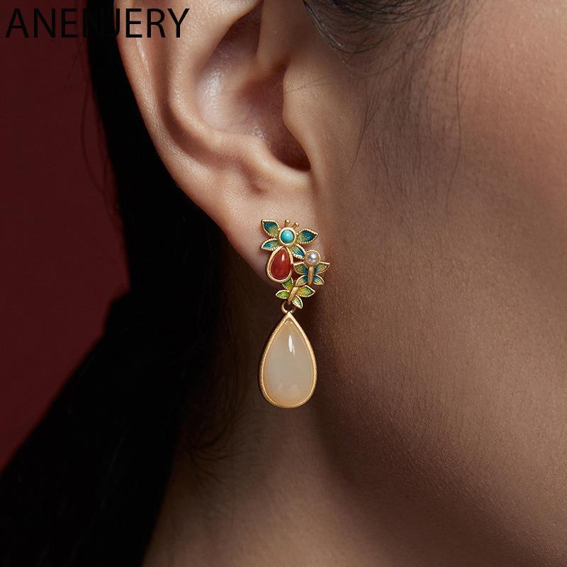 送料無料 ANENJERYシルバーカラー銅型ストーンペンダントバタフライスタッドピアス女性エスニックスタイルフェスティバルジュエリーギフト イヤリング リング 指輪 銀 アクセサリー AE165549372043086