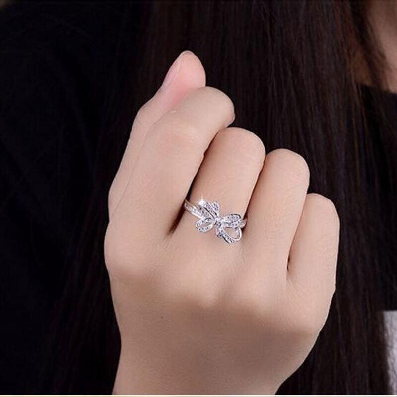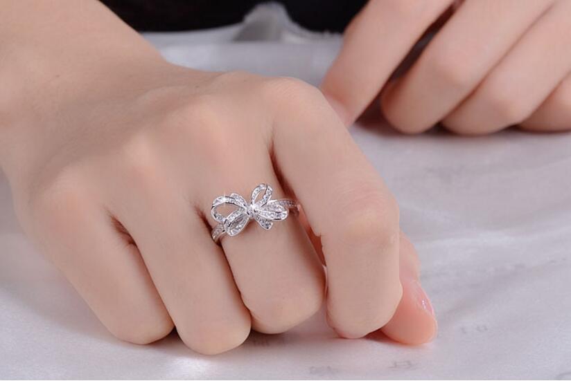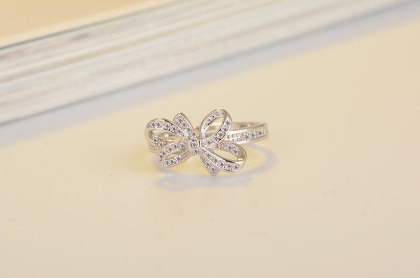 送料無料 ANENJERYシルバーカラーAAAジルコニアボウノットオープニングリング女性バレンタインデーギフトジュエリートレンディシルバーリングS-R223 リボン 指輪 銀 風信子石 アクセサリー AE165585897134984