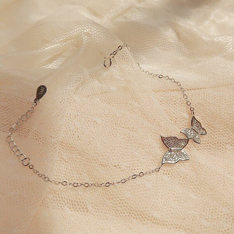 送料無料 ANENJERYシルバーカラーバタフライチャームブレスレットまばゆいばかりのマイクロキュービックジルコンブレスレットジュエリーレディースギフトS-B224 銀 アクセサリー AE165589612292458