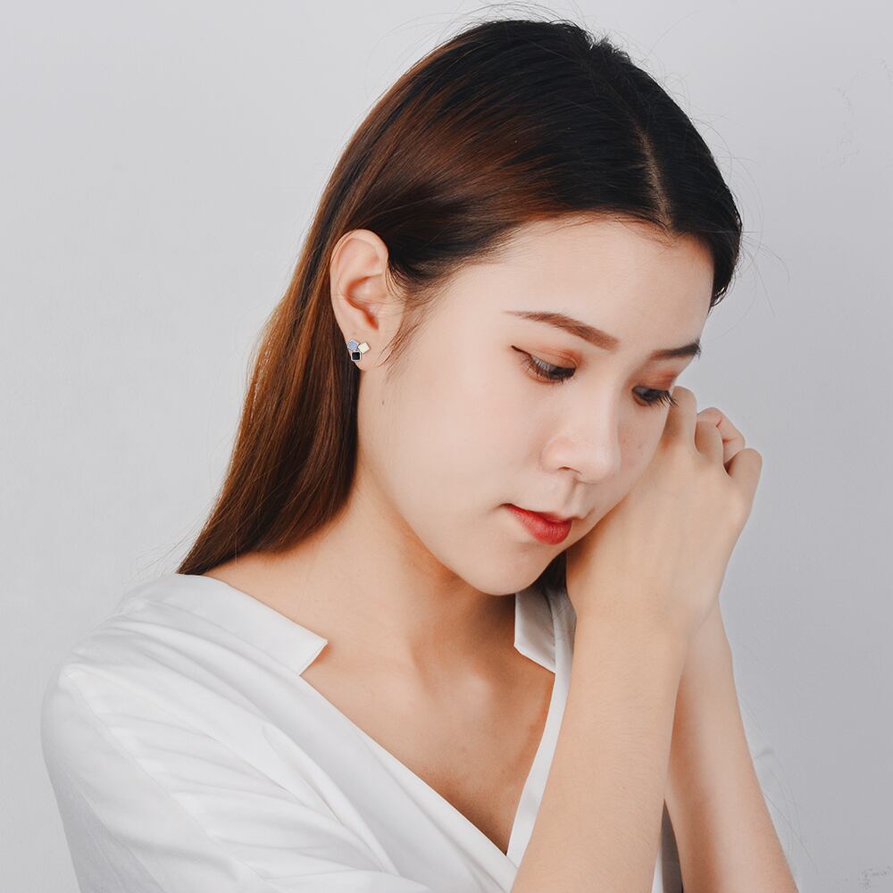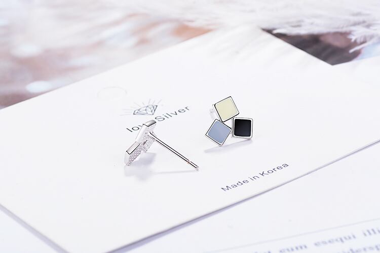 送料無料 シルバーカラークリック寛大な混合色エポキシスクエアスタッドピアス女性ジュエリーブークレドレイユオルベレンS-E799 イヤリング リング 指輪 銀 スクウェア アクセサリー AE165568051606712