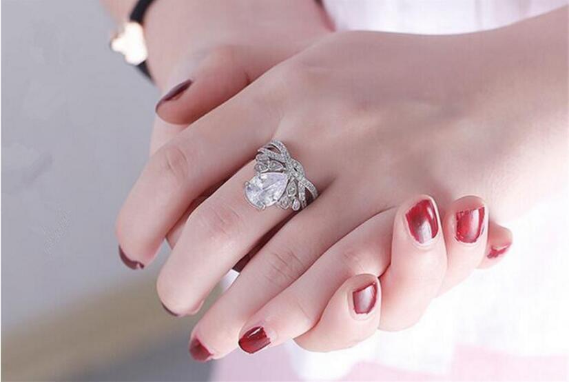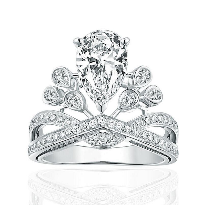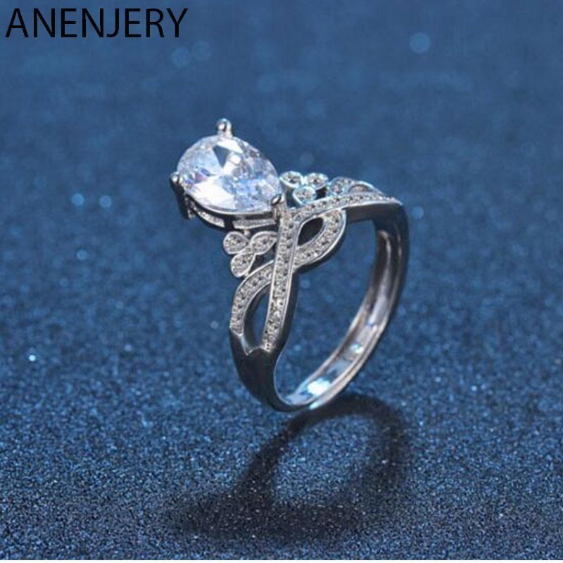 送料無料 ANENJERYシルバーカラーロマンティックラグジュアリーモザイクビッグジルコンクラウンアジャスタブルリングジュエリーS-R194 指輪 銀 アクセサリー AE165571245826817