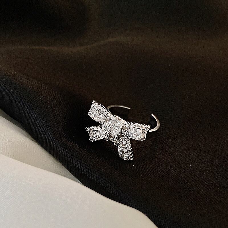 送料無料 ANENJERYシルバーカラー象眼細工ジルコンバタフライリング女性高級シャイニーカクテルパーティーリングウェディングギフト 指輪 銀 アクセサリー AE16558371216847