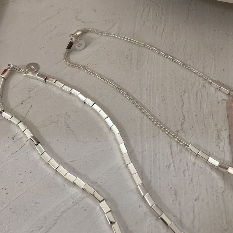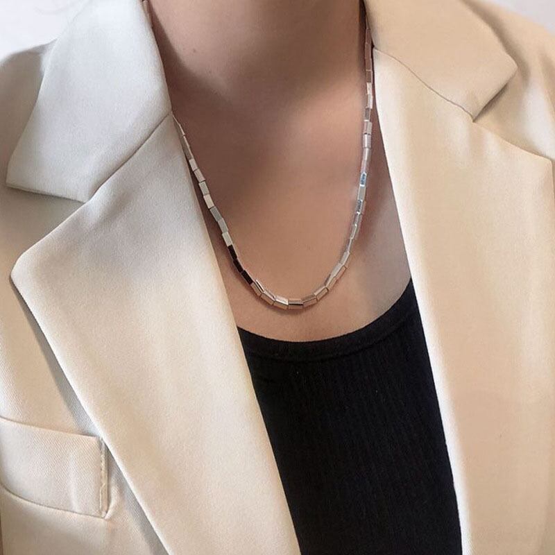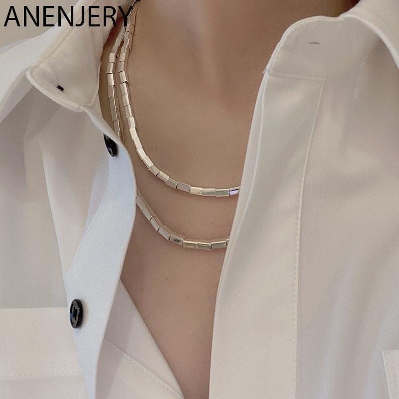 送料無料 ANENJERYシルバーカラースモールスクエアチューブネックレス女性鎖骨チェーンネックレスパーティージュエリーギフト レース 銀 スクウェア アクセサリー AE165562465188239