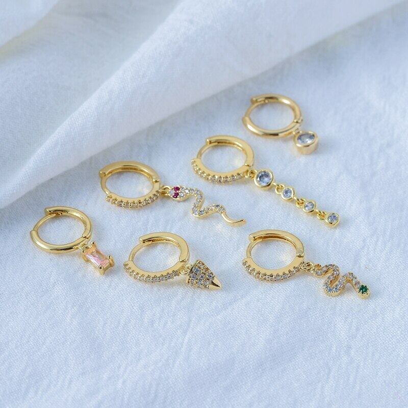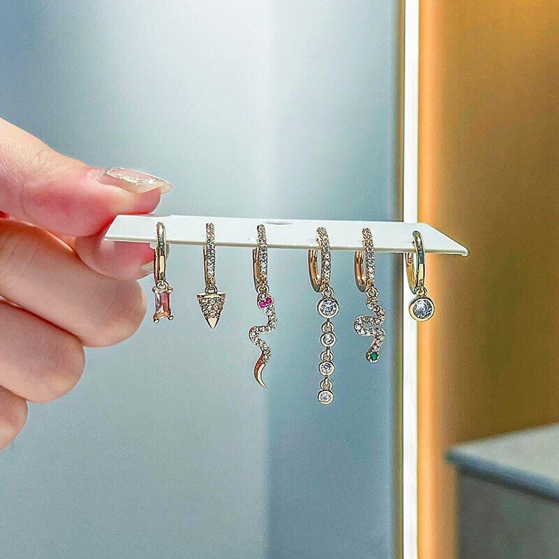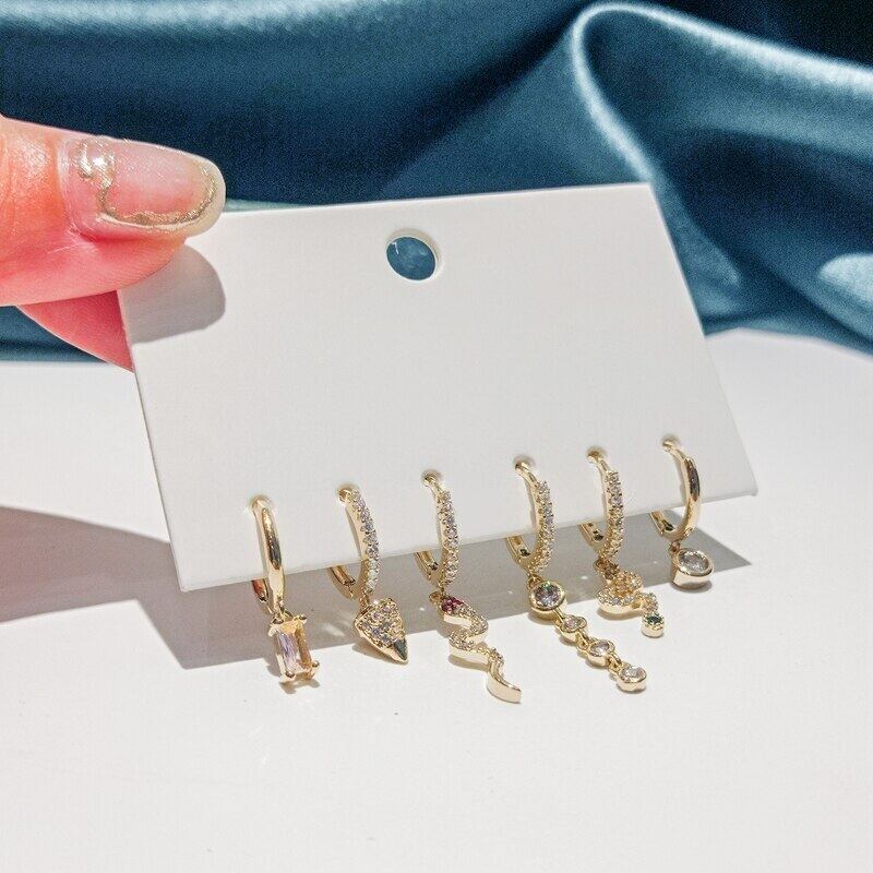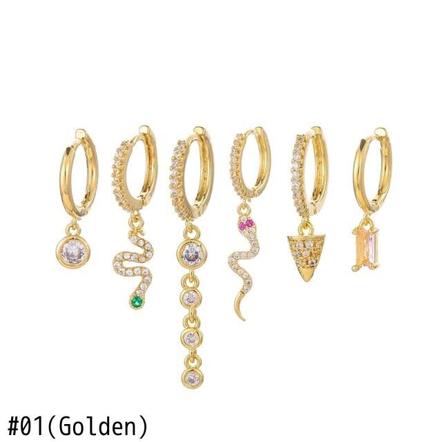 送料無料 ANENJERYシルバーカラージルコンスネークフープピアスキュートで絶妙な6ピースピアスセット イヤリング 大人ガーリー スウィート カジュアル リング 指輪 銀 アクセサリー AE165514021524527
