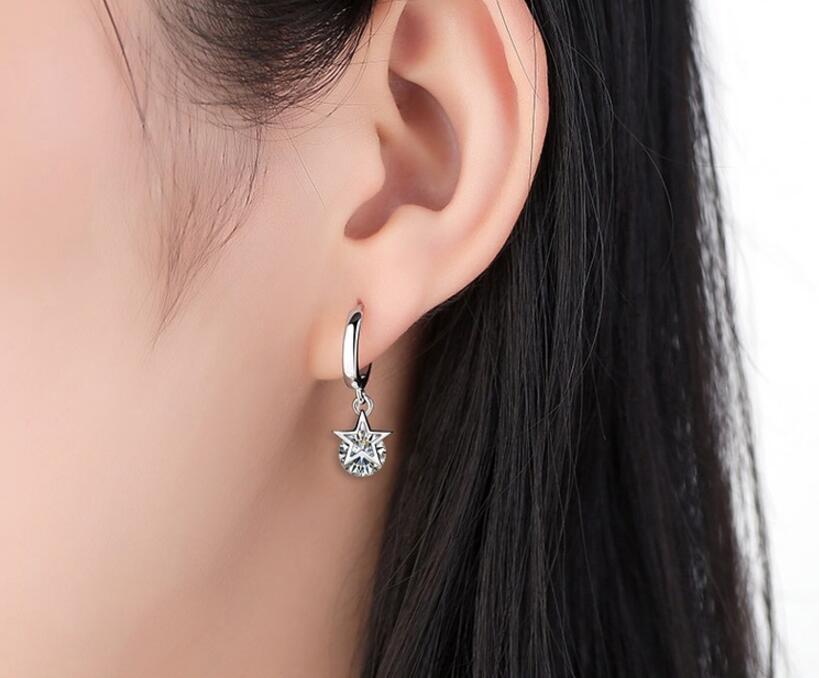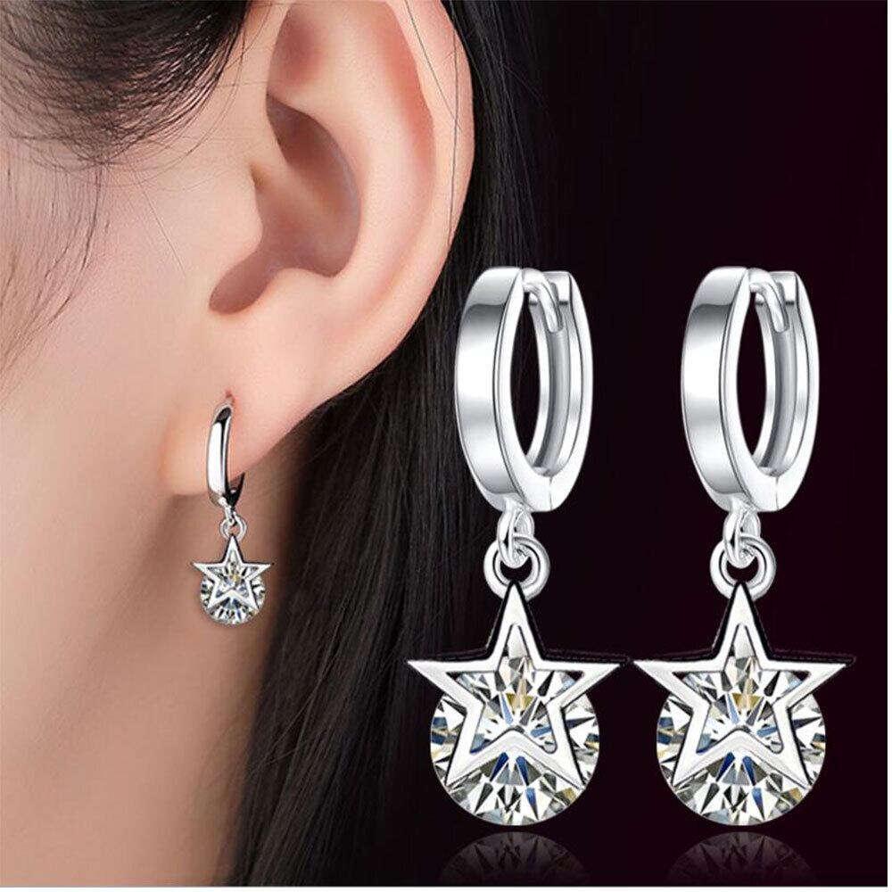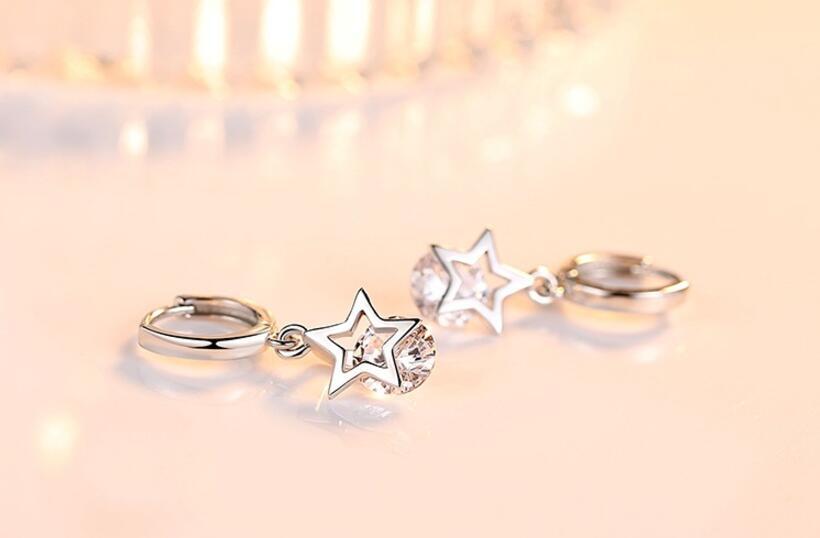 送料無料 ANENJERYシルバーカラーシンプルキュービックジルコンスターペンダントフープピアスレディースベストフレンドギフトジュエリーS-E281 イヤリング リング 指輪 銀 アクセサリー AE165584389681958