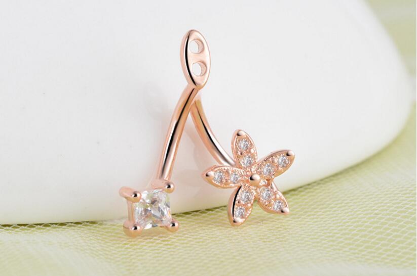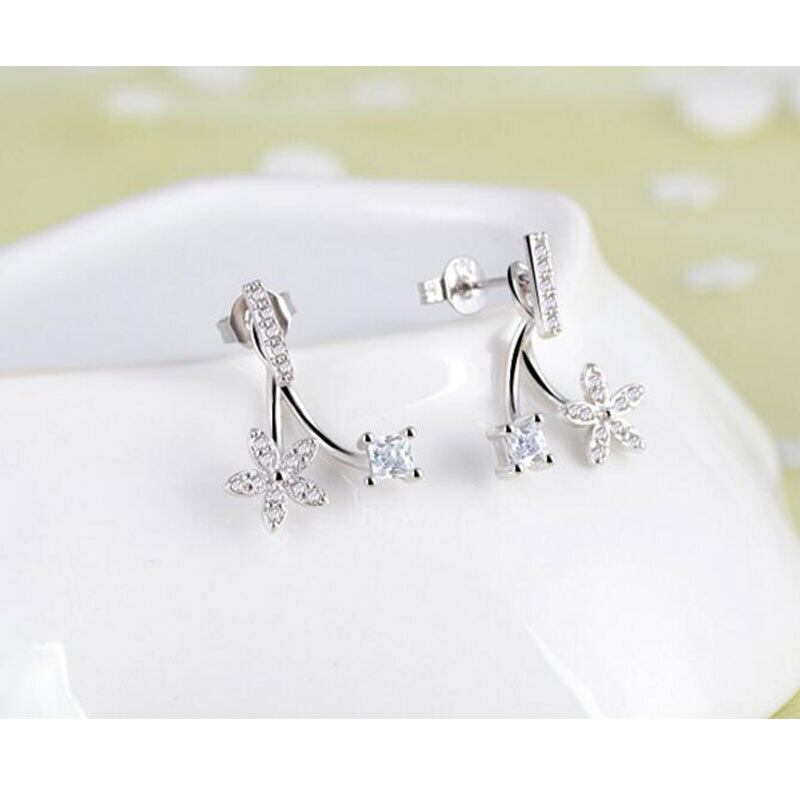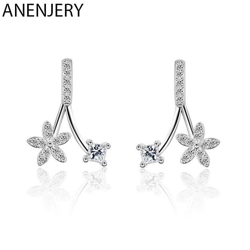 送料無料 ANENJERYシルバーカラーミニマリストフラワーキュービックジルコニアイヤリング女性ラグジュアリーパーティーギフト発送S-E339 フラワーデザイン 銀 風信子石 アクセサリー AE165576327772761
