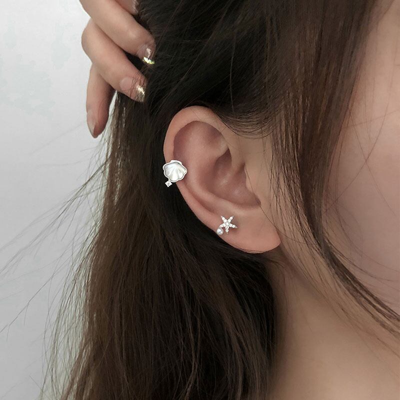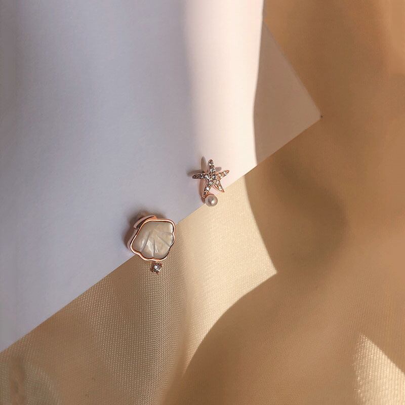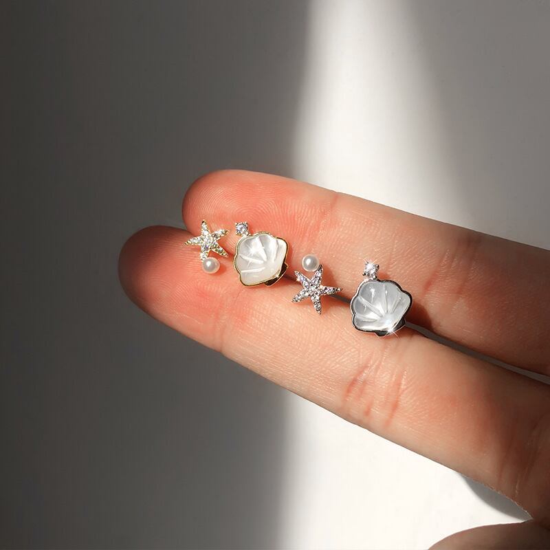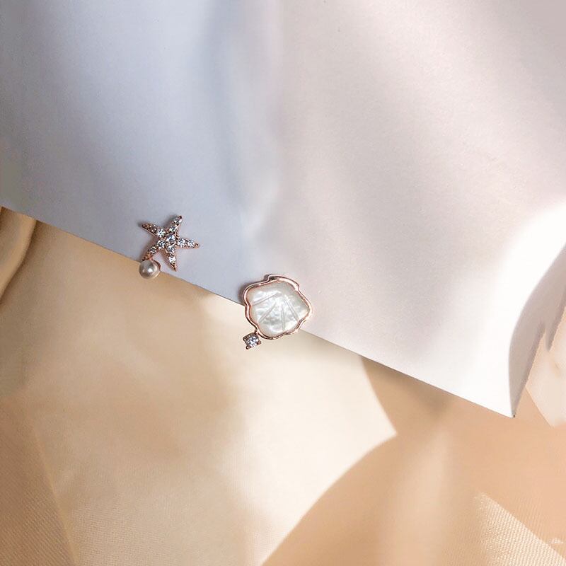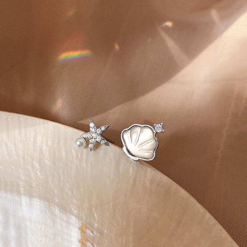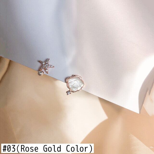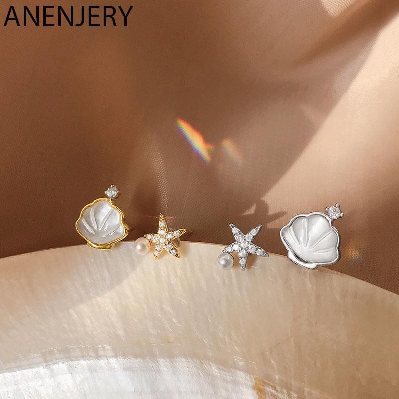 送料無料 ANENJERYシルバーカラーシェルヒトデスタッドピアス女性CZ非対称スモールピアスジュエリー発送S-E1340 イヤリング リング 指輪 銀 アクセサリー AE165544049416585